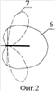 На фиг.2 сплошной линией 6 показана ДН антенны конструкции по фиг.1 для продольной компоненты электрической напряженности Е-волны, а пунктирной линией 7 показана ДН этой же антенны для ТЕМ-волны.