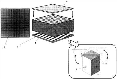 Предлагаемое устройство (чертеже) включает в себя квадратный ящик 1, заполненный квантами: блоками-параллелепипедами 2. Снизу к ящику крепится электродный пол 3. Сверху ящик закрывается прозрачной крышкой 4. Каждый блок 2 имеет сложное строение и состоит из двух модулей-призм 5, которые в исходном состоянии жестко сцеплены друг с другом. Во внешних стенках модулей высверлены специальные отверстия 7, предназначенные для крепления различных вспомогательных устройств, например манипуляторных колец 6. Кроме того, в отверстия 7 можно вставлять цилиндрические штифты, что обеспечит прочную фиксацию блоков 2 друг с другом. Размер ящика 1 и количество блоков 2 в нем регламентируется только пожеланиями или потребностями экспериментатора и, в принципе, произвольны.