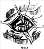 3. Создавать герметизм между стенкой кишки и стенкой кисты за счет оригинальной методики наложения вначале через прорези гильзы троакара провизорных швов, а после извлечения гильзы – гемостатических швов.