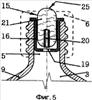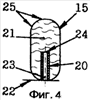 Следует отметить, что для придания одноразовому тампону 15 пространственной жесткости и стабильных размеров, необходимых для гарантированной посадки в торцевом углублении 17 держателя 16, он снабжен специальным устройством – каркасом, который выполнен в виде полой трубочки 20, не выступающей за пределы основания 21 тампона 15 и расположенной внутри него, при этом внутренняя полость 23 трубочки 20 выполнена с возможностью открытого сообщения с атмосферой. Данное выполнение каркаса способствует гарантированному и быстрому смачиванию одноразового тампона 15 антисептической жидкостью. В случае, например, цельного ватного тампона 15 (фиг.3) он может не войти с первого раза в торцевое углубление держателя 16, а если войдет, то закупорит сквозной канал 19, вследствие чего тампон 15 будет смачиваться дольше обычного, или наоборот тампон 15 может разместиться в торцевом углублении 17 держателя 16 слишком свободно, что неминуемо приведет к проливанию антисептической жидкости на одежду и т.д.