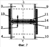 на фиг.7 изображен вариант разборного муфтового соединения единичных емкостей двухкамерного сосуда.