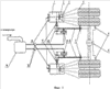 1. Устройство для улучшения сцепных и тормозных качеств буксующих колес на скользких несущих поверхностях, включающее в себя бункер для хранения сыпучего материала с направляющим желобом, установленные в бункере окна с регулировочной колонкой, крыльчатку и ворошитель; сравнитель угловых ускорений и индуктивные датчики; крепежное устройство, представляющее собой салазки, отличающееся тем, что привод крыльчатки осуществляется с помощью механизма, состоящего из электромагнитного клапана, обеспечивающего подачу сжатого воздуха из ресивера в тормозную камеру со штоком, прижимающим ведущий вал с жестко закрепленным на нем обрезиненным роликом к вращающемуся ведущему колесу транспортного средства; конического редуктора, передающего вращение ведущего вала на ведомый карданный вал, связанный с крыльчаткой.