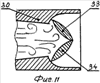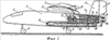 4. Посадка. Подлетая к заданному месту, скорость самолета уменьшают несколькими способами одновременно: за счет поворота закрылка 10, полного перекрытия реактивного сопла ПРД газовыми рулями (фиг.10) с одновременным открытием заслонок боковых каналов (фиг.14), поворотом газовых рулей поперек газовой струи ТРД (фиг.6) и придания самолету положения кабрирования, при котором динамические силы, действующие на крылья, будут направлены не только вверх, но и несколько назад. После зависания самолета над местом посадки обороты ТРД уменьшают, и самолет мягко опускается на заданную площадку.