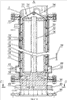Камера 1 (фиг.3) подготовки газовой смеси выполнена в виде эжектора с полостями 17 активного газа – кислорода и 18 пассивного газа – хлористого водорода, с полостью 19, в которой размещен сопловой насадок 20, с камерой смешения с диффузором 21, выход из которого соединен с фланцем 22 коллектора 23 (фиг.2), установленного с наружной стороны верхней части реактора 2 и соединенного с полостью реактора несколькими рядами отверстий 24. Разделитель 4 фаз первой ступени (фиг.4, 5) состоит из четырех коаксиально расположенных оболочек 25, 26, 27, 28 с каналами 29, 30, 31 между ними, в которых размещены дистанцирующие их проволочные спирали 32, 33, 34, образующие каналы для прохода воды и продуктов реакции. Проволочная спираль 34, размещенная в канале 30, для прохода продуктов реакции, одета во фторопластовую трубку для предохранения спирали от воздействия на нее агрессивных продуктов реакции. Спираль 34 (вместе с трубкой) закреплена в коническом обтекателе 35, закрывающем две внутренние оболочки 27 и 28 и соединенном с оболочкой 27, нижний конец которой соединен с нижним фланцем 36 и с нею же соединен верхний перфорированный отверстиями диск 37, с которым соединена оболочка 28 и центральная труба 38, и с нижним концом, установленным в расточке выступа 39 фланца 36. На выступе 39 одет нижний диск 40, соединенный с оболочкой 28 и вместе с ее концом имеющий свободу перемещения вдоль оси. Оболочка 25 соединена с верхним фланцем 41, а нижним концом с коллектором 42 с трубой 43 подвода воды в него. В верхней части оболочки 25 имеется отверстие с трубой отвода воды из полости 29. На нижнем фланце 36 закреплена проставка 44 (фиг.4 и 5) с каналами 45 и 46 для прохода продуктов реакции и диаметральным ребром 47, в котором размещены каналы с трубами 48 и 49 подвода и отвода воды. Между витками спирали 34 размещено несколько штук пластин 50, дистанцирующих расстояние между витками. Спирали 32 и 33 закреплены на оболочках, например, сваркой.