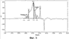 (3) точку пересечения между линией, которая проходит через пик Мр (если имеется несколько пиков, то тогда пик со стороны, характеризующейся наименьшей молекулярной массой) диаграммы ГПХ и является вертикалью по отношению к базовой линии, и базовой линией обозначают как Lp;