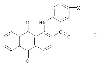 Предлагается новый способ получения производных 7,8-фталоилакридона, которые применяются в анилинокрасочной промышленности для крашения различных видов волокон. Сущность изобретения: продукт: производные 7,8-фталоилакридона формулы I