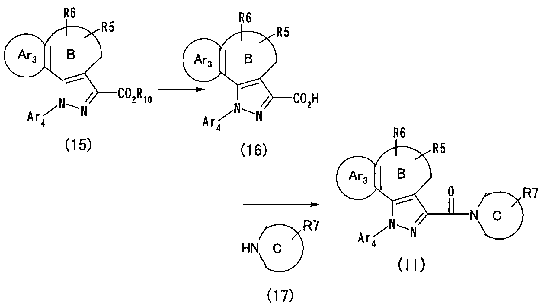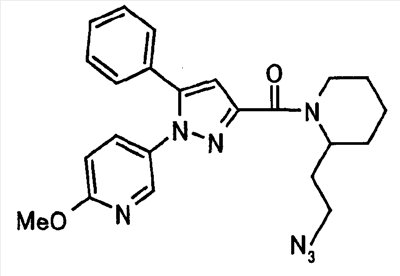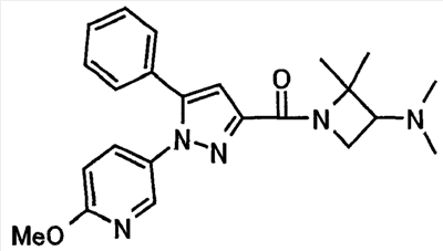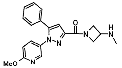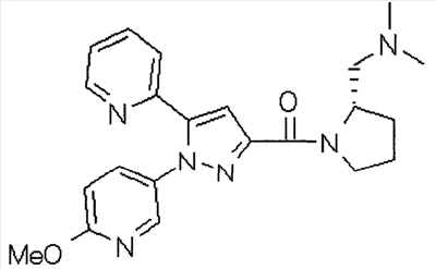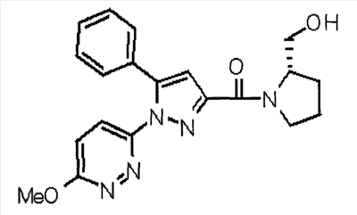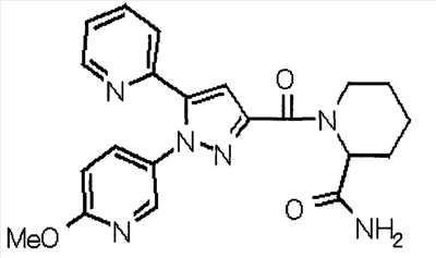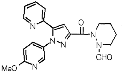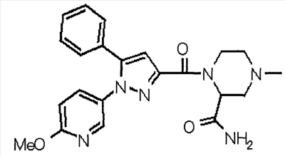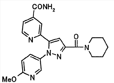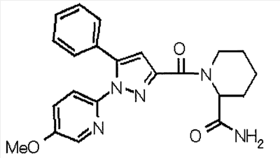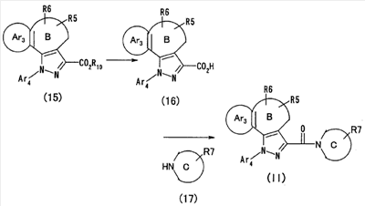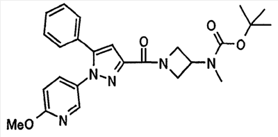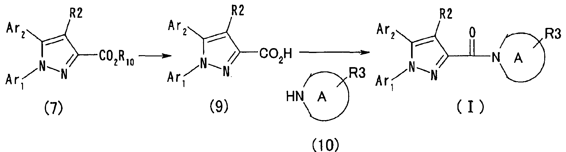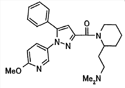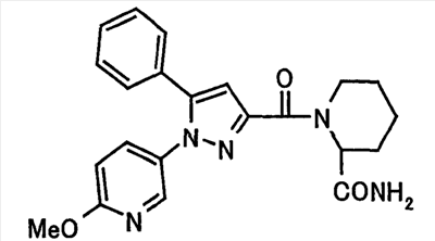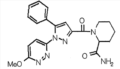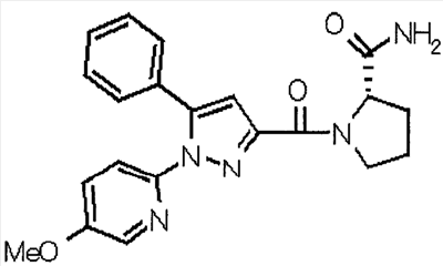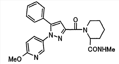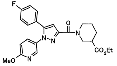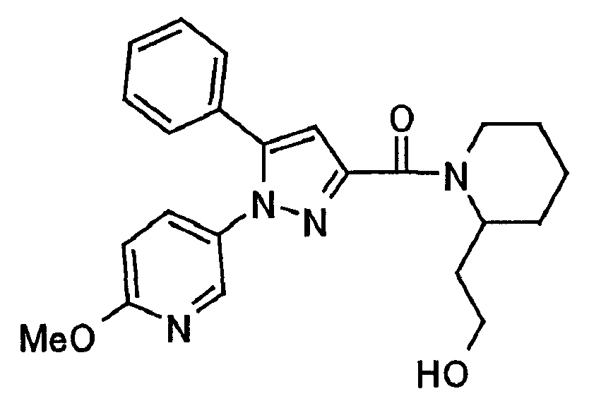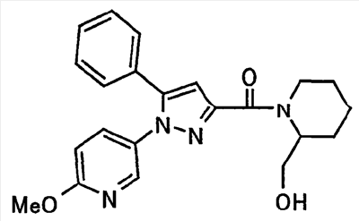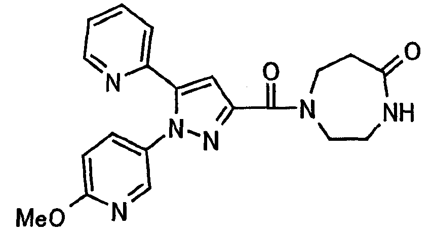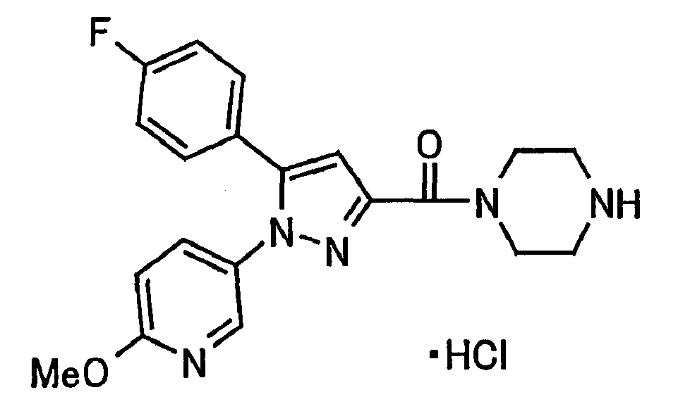 N-Бензилоксипиперидин-2-карбоновую кислоту (2,0 г), 1-гидроксибензотриазол (1,6 г) и гидрохлорид 1-(3-диметиламинопропил)-3-этилкарбодиимида (2,3 г) растворяют в метиленхлориде (20 мл). К образовавшемуся раствору при комнатной температуре добавляют концентрированный водный аммиак (3 мл) и триэтиламин (2 мл) с последующим перемешиванием в течение 3 дней. Реакционную смесь распределяют между водой и метиленхлоридом. Органический слой сушат над безводным сульфатом магния с последующим фильтрованием. Растворитель выпаривают при пониженном давлении. К остатку в метаноле (30 мл) добавляют 10% палладий на угле (1 г, 50% влаги) и образовавшуюся смесь перемешивают в атмосфере водорода в течение 20 часов. Катализатор удаляют фильтрованием. Растворитель выпаривают при пониженном давлении и полученный таким образом масляный продукт сушат, получая при этом указанное в заголовке соединение в виде твердого вещества (970 мг, количественный выход). МС (ESI) m/z: 128 (М+). [Ссылочный пример 132] Метиламид пиперидин-2-карбоновой кислоты Общую процедуру ссылочного примера 131 повторяют с применением N-бензилоксипиперидин-2-карбоновой кислоты (2,0 г) и 1,0 М метиламина в тетрагидрофуране (4 мл), получая при этом указанное в заголовке соединение в виде маслянистого продукта (970 мг, количественный выход). МС (ESI) m/z: 142 (М+). [Ссылочный пример 133] Диметиламид пиперидин-2-карбоновой кислоты Общую процедуру ссылочного примера 131 повторяют с применением N-бензилоксипиперидин-2-карбоновой кислоты (6,4 г) и гидрохлорида диметиламина (2 г), получая при этом указанное в заголовке соединение в виде маслянистого продукта (3,8 г, количественный выход). МС (ESI) m/z: 156 (М+). [Ссылочный пример 134] Этиловый эфир 4-(4-фторфенил)-2,4-диоксобутановой кислоты Общую процедуру ссылочного примера 3-1) повторяют с применением 4′-фторацетофенона (3,0 г) и диэтилоксалата (5,9 мл), получая при этом указанное в заголовке соединение в виде твердого вещества (3,12 г, 60%). 1H-ЯМР (400 МГц, CDCl3) МС (ESI) m/z: 239 (М+1)+. [Ссылочный пример 135] Этиловый эфир 5-(4-фторфенил)-1-(6-метокси-3-пиридил)пиразол-3-карбоновой кислоты Общую процедуру ссылочного примера 3-2) повторяют с применением 5-гидразино-2-метоксипиридина (1,0 г), полученного в ссылочном примере 2, и этилового эфира 4-(4-фторфенил)-2,4-диоксобутановой кислоты (1,88 г), полученного в ссылочном примере 134, получая при этом указанное в заголовке соединение в виде маслянистого продукта (2,12 г, 86%). 1H-ЯМР (400 МГц, CDCl3) МС (EI) m/z: 341 (М+). [Ссылочный пример 136] 5-(4-Фторфенил)-1-(6-метокси-3-пиидил)пиразол-3-карбоновая кислота Водный 1 н. гидроксид натрия (1,2 л) добавляют к этиловому эфиру 5-(4-фторфенил)-1-(6-метокси-3-пиридил)пиразол-3-карбоновой кислоты (164 г) в метаноле (1,6 л) и образовавшуюся смесь перемешивают при комнатной температуре в течение 5 часов. Растворитель реакции удаляют при пониженном давлении и остаток распределяют между водой и диэтиловым эфиром. рН водного слоя регулируют при значении 2 посредством добавления водной 1 н. хлористоводородной кислоты (1,5 л) и осажденные кристаллы растворяют в хлороформе. Образовавшийся раствор распределяют с применением насыщенного раствора соли и органический слой сушат над безводным сульфатом натрия с последующим фильтрованием. Растворитель выпаривают при пониженном давлении и осажденные кристаллы из диэтилового эфира выделяют фильтрованием, получая при этом указанное в заголовке соеди