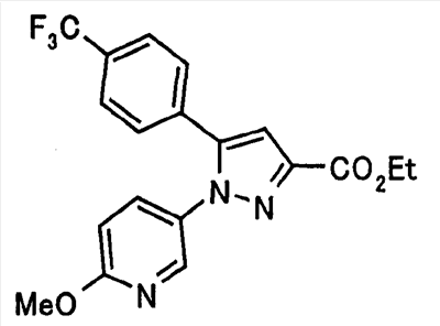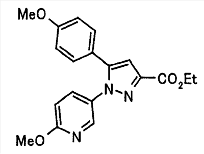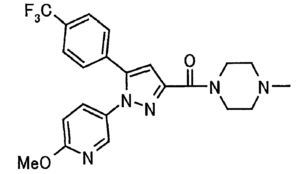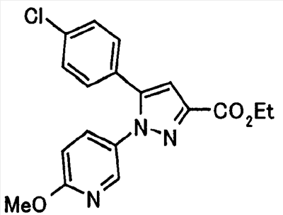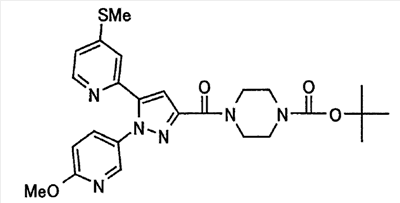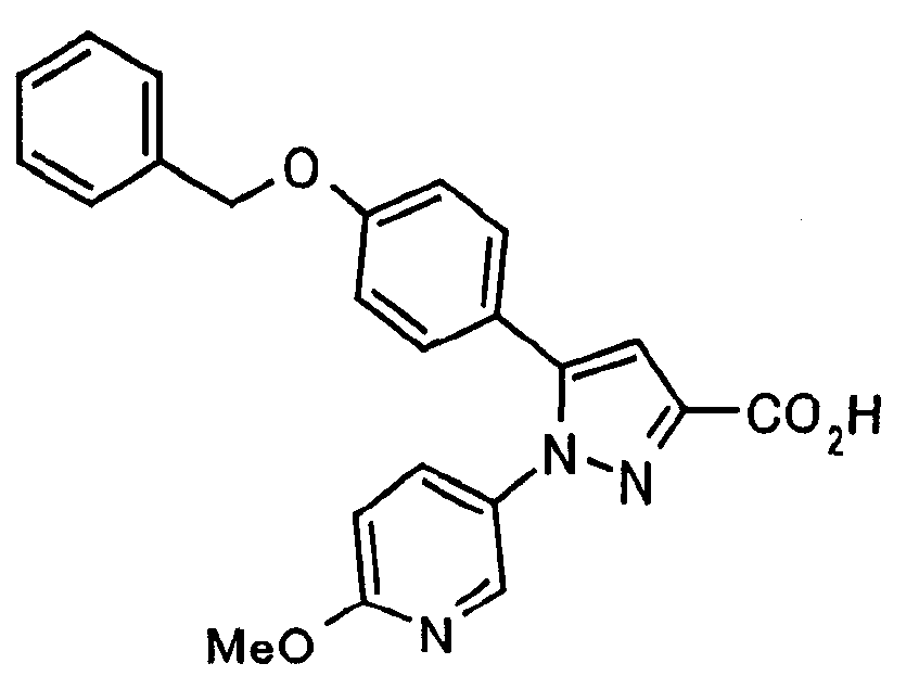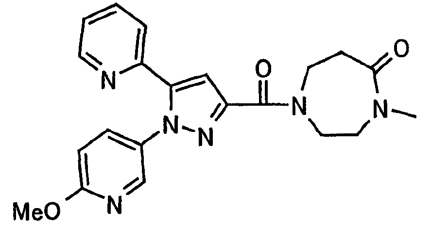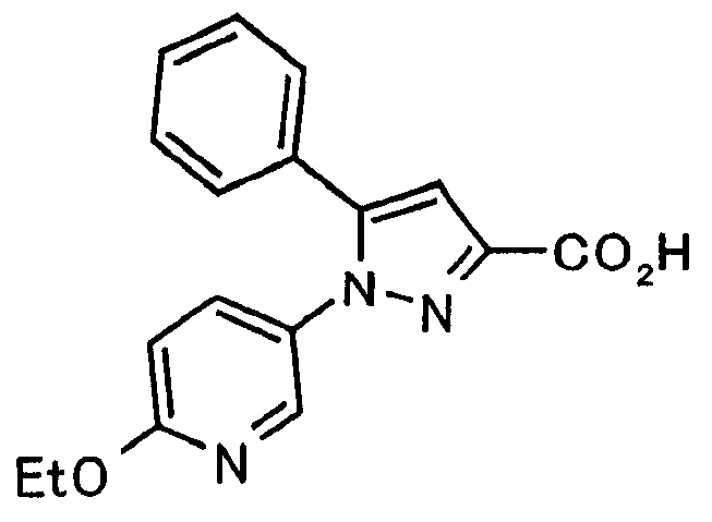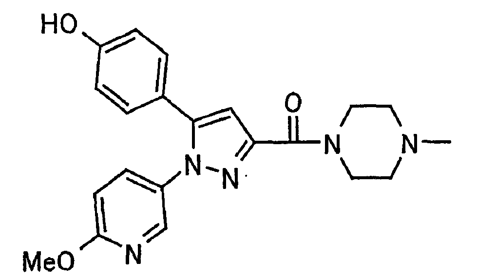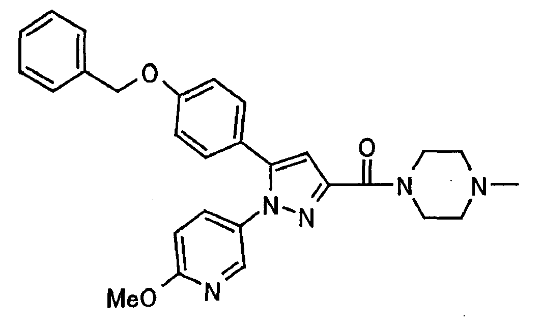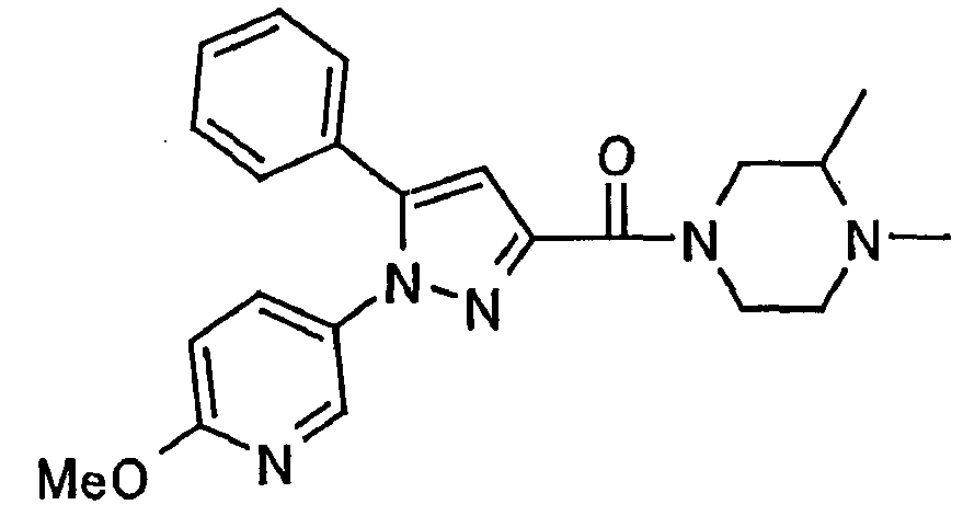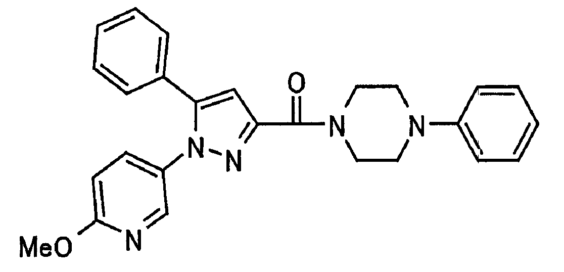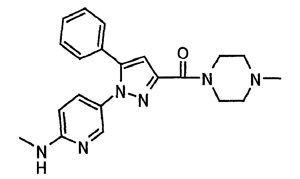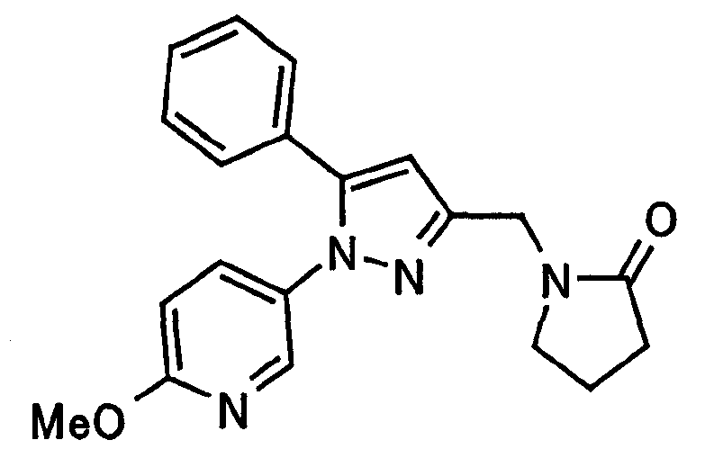В атмосфере аргона 0,93 М метилмагнийбромид в тетрагидрофуране (13,8 мл) добавляют по каплям к 4-метоксипиридин-2-карбонитрилу (1,56 г) в тетрагидрофуране (31 мл) при -78°С с последующим перемешиванием в течение 15 минут. После этого реакционную смесь перемешивают при 0°С в течение 15 минут и затем при комнатной температуре в течение 5 часов. К реакционной смеси по каплям добавляют воду. Образовавшуюся смесь распределяют между водой и этилацетатом. Органический слой сушат над безводным сульфатом натрия с последующим фильтрованием. Растворитель выпаривают при пониженном давлении и остаток очищают колоночной хроматографией на силикагеле (гексан-этилацетат), получая при этом указанное в заголовке соединение в виде твердого вещества (1,30 г, 73%). 1H-ЯМР (400 МГц, CDCl3) МС (ESI) m/z: 152 (М+H)+. [Ссылочный пример 17] Этиловый эфир 4-(4-метокси-2-пиридил)-2,4-диоксобутановой кислоты Способом, аналогичным способу, описанному в стадии 1) ссылочного примера 3, указанное в заголовке соединение получают в виде твердого вещества (0,713 г, 33%) с применением 1-(4-метокси-2-пиридил)этанона (1,28 г) и диэтилоксалата (2,30 мл). 1H-ЯМР (400 МГц, CDCl3) МС (EI) m/z: 251 (М+). [Ссылочный пример 18] Этиловый эфир 1-(6-метокси-3-пиридил)-5-(4-метокси-2-пиридил)пиразол-3-карбоновой кислоты Способом, аналогичным способу, описанному в стадии 2) ссылочного примера 3, указанное в заголовке соединение получают в виде твердого вещества (0,473 г, 49%) с применением этилового эфира 4-(4-метокси-2-пиридил)-2,4-диоксобутановой кислоты (0,691 г), полученного в ссылочном примере 17, и 5-гидразино-2-метоксипиридина (0,383 г), полученного в ссылочном примере 2. 1H-ЯМР (400 МГц, CDCl3) МС (FAB) m/z: 355 (М+H)+. [Ссылочный пример 19] 1-(6-метокси-3-пиридил)-5-(4-метокси-2-пиридил)пиразол-3-карбоновая кислота 1 н. Водный раствор гидроксида натрия (2,23 мл) добавляют к этиловому эфиру 1-(6-метокси-3-пиридил)-5-(4-метокси-2-пиридил)пиразол-3-карбоновой кислоты (0,416 г), полученному в ссылочном примере 18, в смеси метанола (6,3 мл) и тетрагидрофурана (6,3 мл) при комнатной температуре с последующим перемешиванием в течение 5 часов. Реакционную смесь нейтрализуют 1 н. водным раствором хлористоводородной кислоты (2,23 мл) и затем распределяют между водой и хлороформом. Затем водный слой экстрагируют хлороформом два раза. Органический слой сушат над безводным сульфатом натрия с последующим фильтрованием. Растворитель выпаривают при пониженном давлении, получая при этом указанное в заголовке соединение в виде твердого вещества (0,353 г, 92%). 1Н-ЯМР (400 МГц, ДМСО-d6) МС (FAB) m/z: 327 (М+H)+. [Ссылочный пример 20] 2-Бром-6-метоксипиридин В атмосфере аргона метоксид натрия (1,82 г) добавляют к 2,6-дибромпиридину (8,0 г) в толуоле (120 мл) с последующим перемешиванием при 120°С в течение 13 часов. Затем к смеси добавляют метоксид натрия (0,728 г) с последующим перемешиванием при 120°С в течение 6 часов. Смесь охлаждают на воздухе. Реакционную смесь распределяют между водой и этилацетатом. Органический слой сушат над безводным сульфатом натрия с последующим фильтрованием. Растворитель выпаривают при пониженном давлении. Остаток очищают колоночной хроматографией на силикагеле (гексан-этилацетат), получая при этом указанное в заголовке соединение в виде маслянистого вещества (5,64 г, 89%). 1H-ЯМР (400 МГц, CDCl3) [Ссылочный пример 21] 6-Метоксипиридин-2-карбонитрил Цианид меди (I) (2,68 г) добавляют к 2-бром-6-метоксипиридину (5,62 г) в N,N-диметилформамиде (112 мл) при к