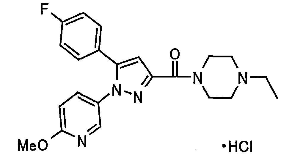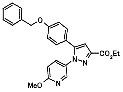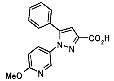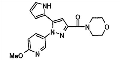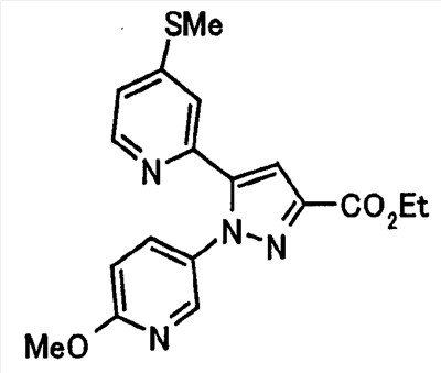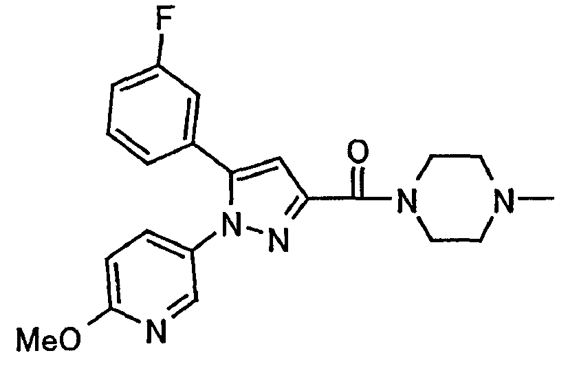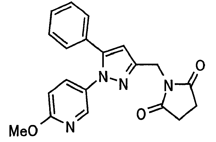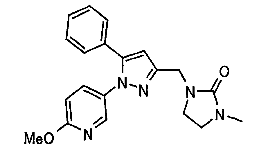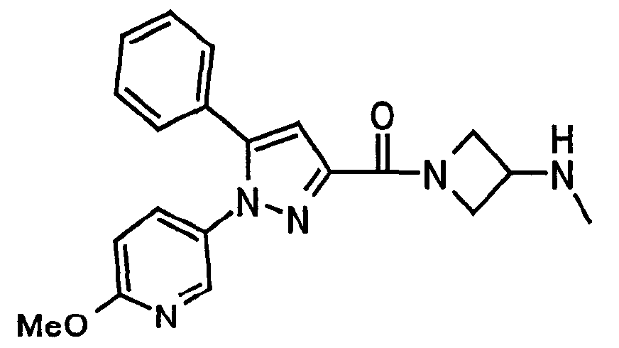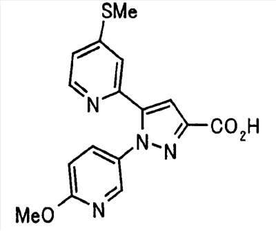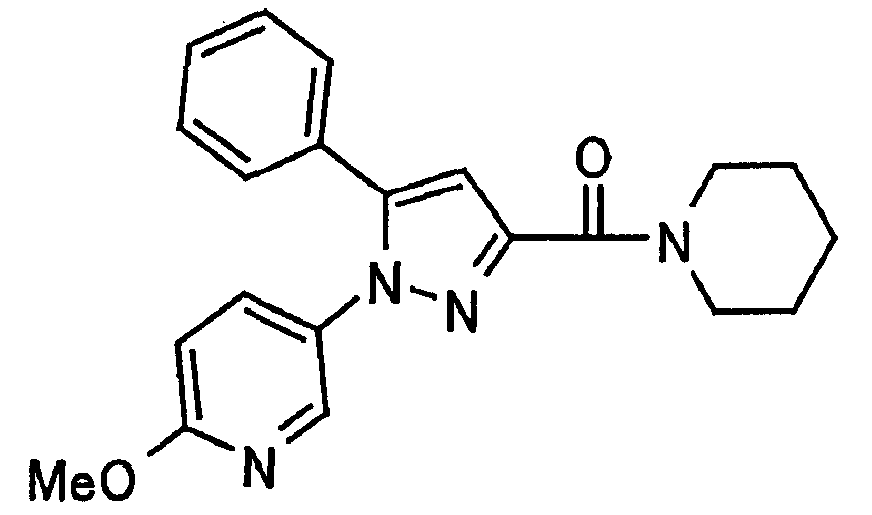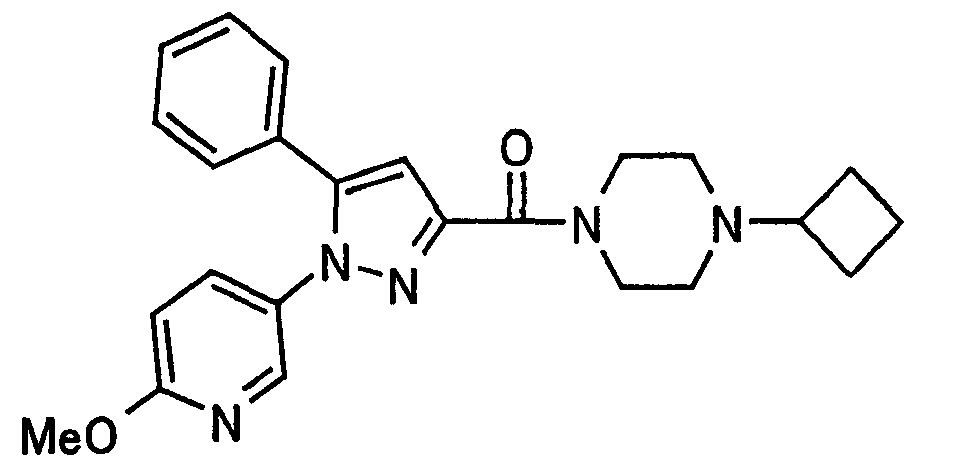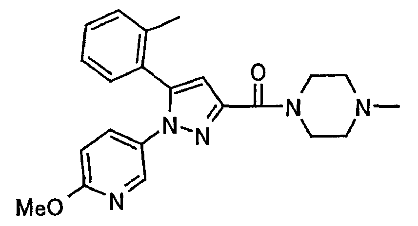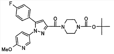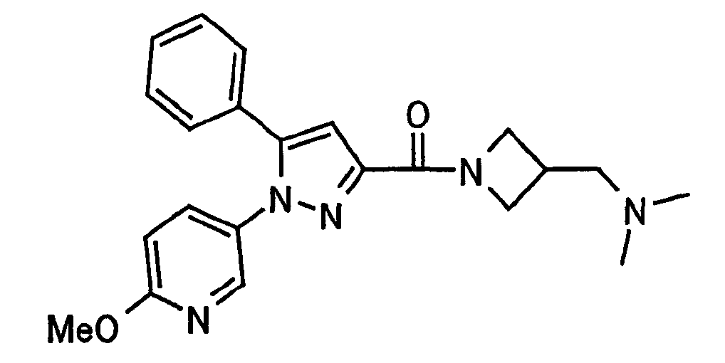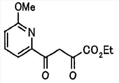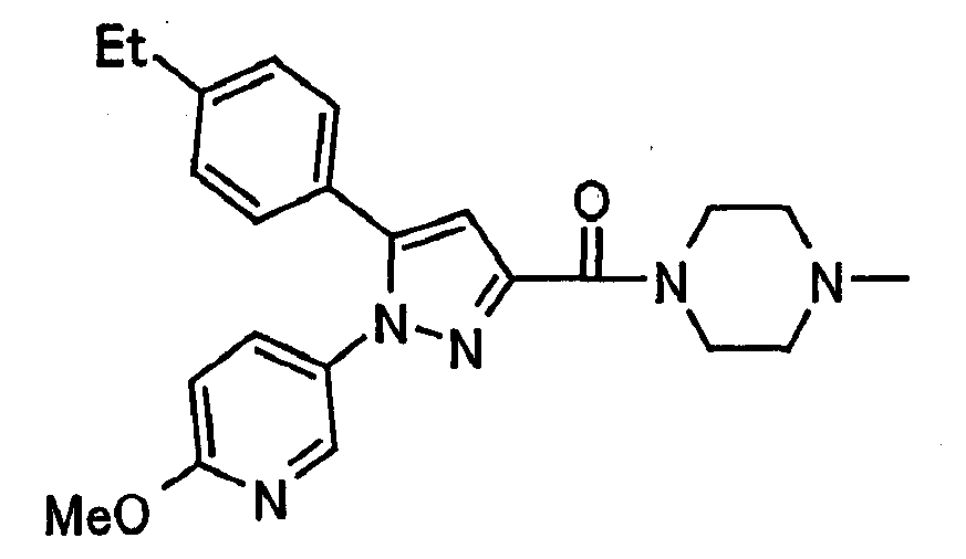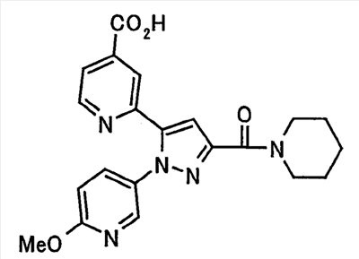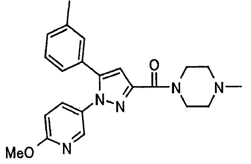В атмосфере аргона 0,93 М метилмагнийбромид в тетрагидрофуране (13,8 мл) добавляют по каплям к 4-метоксипиридин-2-карбонитрилу (1,56 г) в тетрагидрофуране (31 мл) при -78°С с последующим перемешиванием в течение 15 минут. После этого реакционную смесь перемешивают при 0°С в течение 15 минут и затем при комнатной температуре в течение 5 часов. К реакционной смеси по каплям добавляют воду. Образовавшуюся смесь распределяют между водой и этилацетатом. Органический слой сушат над безводным сульфатом натрия с последующим фильтрованием. Растворитель выпаривают при пониженном давлении и остаток очищают колоночной хроматографией на силикагеле (гексан-этилацетат), получая при этом указанное в заголовке соединение в виде твердого вещества (1,30 г, 73%). 1H-ЯМР (400 МГц, CDCl3) МС (ESI) m/z: 152 (М+H)+. [Ссылочный пример 17] Этиловый эфир 4-(4-метокси-2-пиридил)-2,4-диоксобутановой кислоты Способом, аналогичным способу, описанному в стадии 1) ссылочного примера 3, указанное в заголовке соединение получают в виде твердого вещества (0,713 г, 33%) с применением 1-(4-метокси-2-пиридил)этанона (1,28 г) и диэтилоксалата (2,30 мл). 1H-ЯМР (400 МГц, CDCl3) МС (EI) m/z: 251 (М+). [Ссылочный пример 18] Этиловый эфир 1-(6-метокси-3-пиридил)-5-(4-метокси-2-пиридил)пиразол-3-карбоновой кислоты Способом, аналогичным способу, описанному в стадии 2) ссылочного примера 3, указанное в заголовке соединение получают в виде твердого вещества (0,473 г, 49%) с применением этилового эфира 4-(4-метокси-2-пиридил)-2,4-диоксобутановой кислоты (0,691 г), полученного в ссылочном примере 17, и 5-гидразино-2-метоксипиридина (0,383 г), полученного в ссылочном примере 2. 1H-ЯМР (400 МГц, CDCl3) МС (FAB) m/z: 355 (М+H)+. [Ссылочный пример 19] 1-(6-метокси-3-пиридил)-5-(4-метокси-2-пиридил)пиразол-3-карбоновая кислота 1 н. Водный раствор гидроксида натрия (2,23 мл) добавляют к этиловому эфиру 1-(6-метокси-3-пиридил)-5-(4-метокси-2-пиридил)пиразол-3-карбоновой кислоты (0,416 г), полученному в ссылочном примере 18, в смеси метанола (6,3 мл) и тетрагидрофурана (6,3 мл) при комнатной температуре с последующим перемешиванием в течение 5 часов. Реакционную смесь нейтрализуют 1 н. водным раствором хлористоводородной кислоты (2,23 мл) и затем распределяют между водой и хлороформом. Затем водный слой экстрагируют хлороформом два раза. Органический слой сушат над безводным сульфатом натрия с последующим фильтрованием. Растворитель выпаривают при пониженном давлении, получая при этом указанное в заголовке соединение в виде твердого вещества (0,353 г, 92%). 1Н-ЯМР (400 МГц, ДМСО-d6) МС (FAB) m/z: 327 (М+H)+. [Ссылочный пример 20] 2-Бром-6-метоксипиридин В атмосфере аргона метоксид натрия (1,82 г) добавляют к 2,6-дибромпиридину (8,0 г) в толуоле (120 мл) с последующим перемешиванием при 120°С в течение 13 часов. Затем к смеси добавляют метоксид натрия (0,728 г) с последующим перемешиванием при 120°С в течение 6 часов. Смесь охлаждают на воздухе. Реакционную смесь распределяют между водой и этилацетатом. Органический слой сушат над безводным сульфатом натрия с последующим фильтрованием. Растворитель выпаривают при пониженном давлении. Остаток очищают колоночной хроматографией на силикагеле (гексан-этилацетат), получая при этом указанное в заголовке соединение в виде маслянистого вещества (5,64 г, 89%). 1H-ЯМР (400 МГц, CDCl3) [Ссылочный пример 21] 6-Метоксипиридин-2-карбонитрил Цианид меди (I) (2,68 г) добавляют к 2-бром-6-метоксипиридину (5,62 г) в N,N-диметилформамиде (112 мл) при к