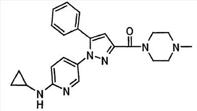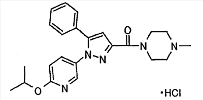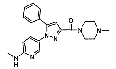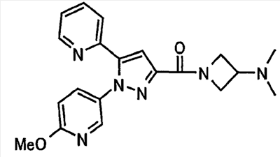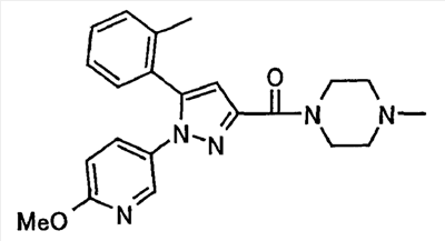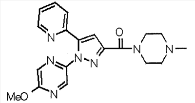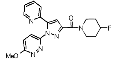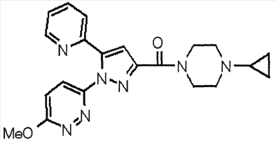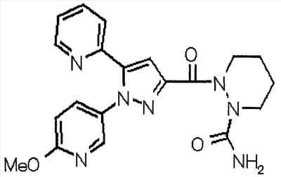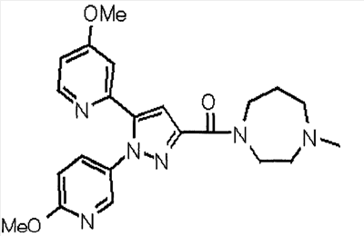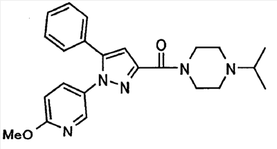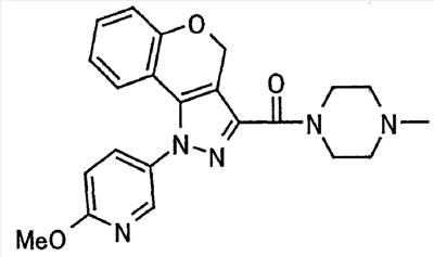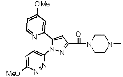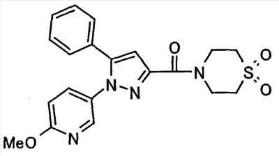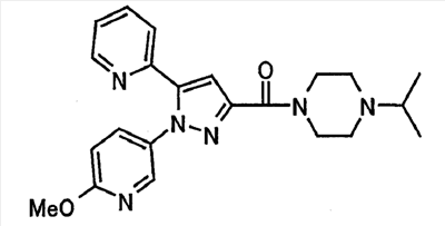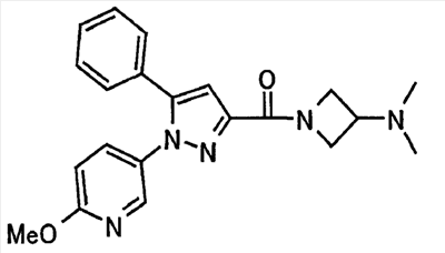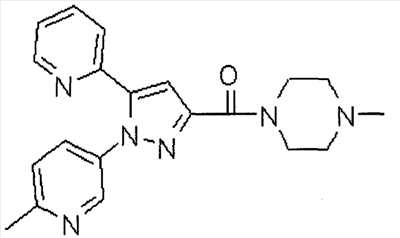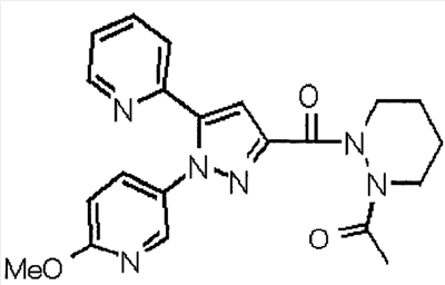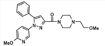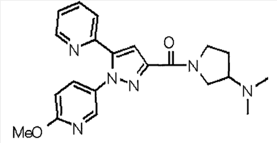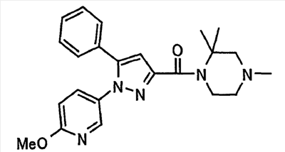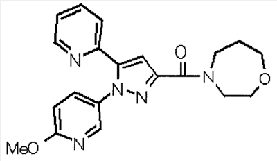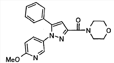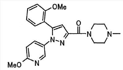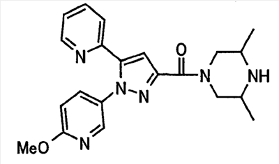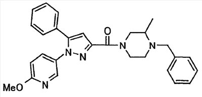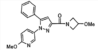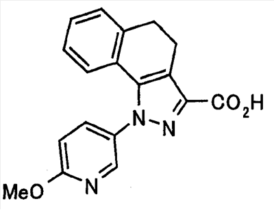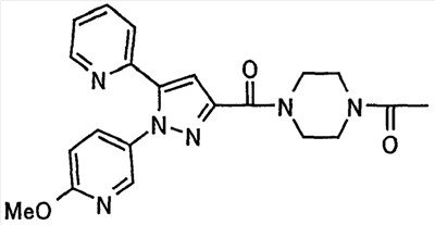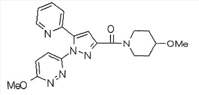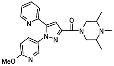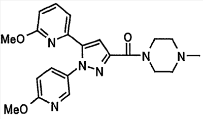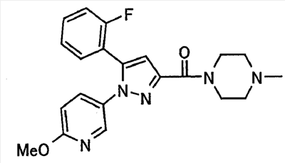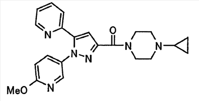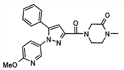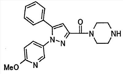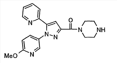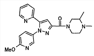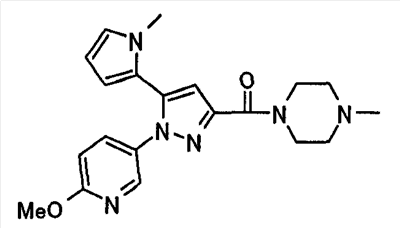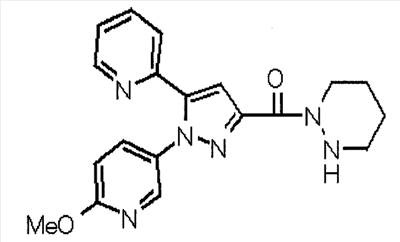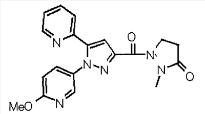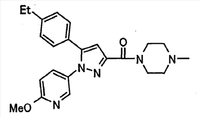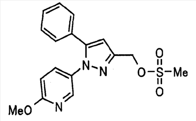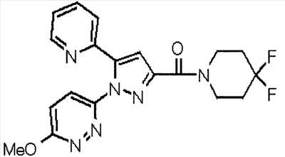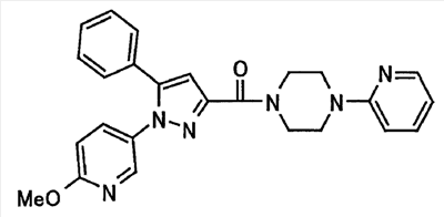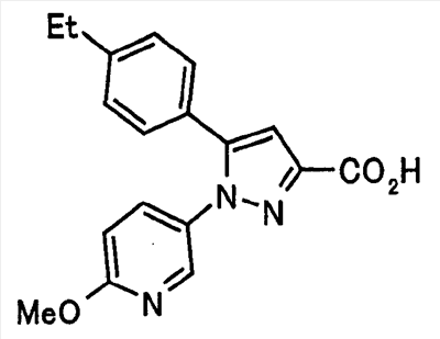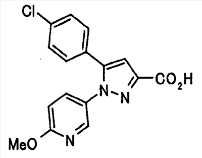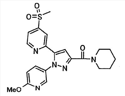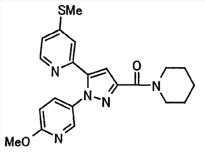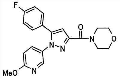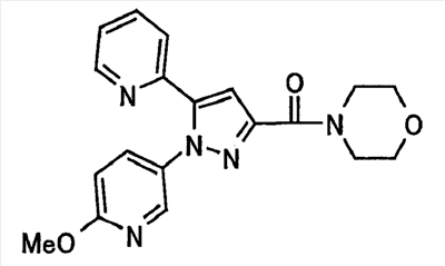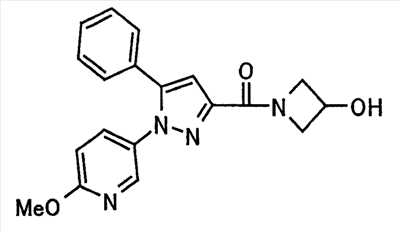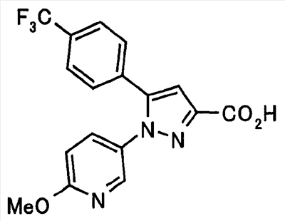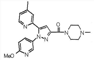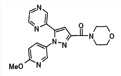 В атмосфере аргона 0,93 М метилмагнийбромид в тетрагидрофуране (13,8 мл) добавляют по каплям к 4-метоксипиридин-2-карбонитрилу (1,56 г) в тетрагидрофуране (31 мл) при -78°С с последующим перемешиванием в течение 15 минут. После этого реакционную смесь перемешивают при 0°С в течение 15 минут и затем при комнатной температуре в течение 5 часов. К реакционной смеси по каплям добавляют воду. Образовавшуюся смесь распределяют между водой и этилацетатом. Органический слой сушат над безводным сульфатом натрия с последующим фильтрованием. Растворитель выпаривают при пониженном давлении и остаток очищают колоночной хроматографией на силикагеле (гексан-этилацетат), получая при этом указанное в заголовке соединение в виде твердого вещества (1,30 г, 73%). 1H-ЯМР (400 МГц, CDCl3) МС (ESI) m/z: 152 (М+H)+. [Ссылочный пример 17] Этиловый эфир 4-(4-метокси-2-пиридил)-2,4-диоксобутановой кислоты Способом, аналогичным способу, описанному в стадии 1) ссылочного примера 3, указанное в заголовке соединение получают в виде твердого вещества (0,713 г, 33%) с применением 1-(4-метокси-2-пиридил)этанона (1,28 г) и диэтилоксалата (2,30 мл). 1H-ЯМР (400 МГц, CDCl3) МС (EI) m/z: 251 (М+). [Ссылочный пример 18] Этиловый эфир 1-(6-метокси-3-пиридил)-5-(4-метокси-2-пиридил)пиразол-3-карбоновой кислоты Способом, аналогичным способу, описанному в стадии 2) ссылочного примера 3, указанное в заголовке соединение получают в виде твердого вещества (0,473 г, 49%) с применением этилового эфира 4-(4-метокси-2-пиридил)-2,4-диоксобутановой кислоты (0,691 г), полученного в ссылочном примере 17, и 5-гидразино-2-метоксипиридина (0,383 г), полученного в ссылочном примере 2. 1H-ЯМР (400 МГц, CDCl3) МС (FAB) m/z: 355 (М+H)+. [Ссылочный пример 19] 1-(6-метокси-3-пиридил)-5-(4-метокси-2-пиридил)пиразол-3-карбоновая кислота 1 н. Водный раствор гидроксида натрия (2,23 мл) добавляют к этиловому эфиру 1-(6-метокси-3-пиридил)-5-(4-метокси-2-пиридил)пиразол-3-карбоновой кислоты (0,416 г), полученному в ссылочном примере 18, в смеси метанола (6,3 мл) и тетрагидрофурана (6,3 мл) при комнатной температуре с последующим перемешиванием в течение 5 часов. Реакционную смесь нейтрализуют 1 н. водным раствором хлористоводородной кислоты (2,23 мл) и затем распределяют между водой и хлороформом. Затем водный слой экстрагируют хлороформом два раза. Органический слой сушат над безводным сульфатом натрия с последующим фильтрованием. Растворитель выпаривают при пониженном давлении, получая при этом указанное в заголовке соединение в виде твердого вещества (0,353 г, 92%). 1Н-ЯМР (400 МГц, ДМСО-d6) МС (FAB) m/z: 327 (М+H)+. [Ссылочный пример 20] 2-Бром-6-метоксипиридин В атмосфере аргона метоксид натрия (1,82 г) добавляют к 2,6-дибромпиридину (8,0 г) в толуоле (120 мл) с последующим перемешиванием при 120°С в течение 13 часов. Затем к смеси добавляют метоксид натрия (0,728 г) с последующим перемешиванием при 120°С в течение 6 часов. Смесь охлаждают на воздухе. Реакционную смесь распределяют между водой и этилацетатом. Органический слой сушат над безводным сульфатом натрия с последующим фильтрованием. Растворитель выпаривают при пониженном давлении. Остаток очищают колоночной хроматографией на силикагеле (гексан-этилацетат), получая при этом указанное в заголовке соединение в виде маслянистого вещества (5,64 г, 89%). 1H-ЯМР (400 МГц, CDCl3) [Ссылочный пример 21] 6-Метоксипиридин-2-карбонитрил Цианид меди (I) (2,68 г) добавляют к 2-бром-6-метоксипиридину (5,62 г) в N,N-диметилформамиде (112 мл) при к