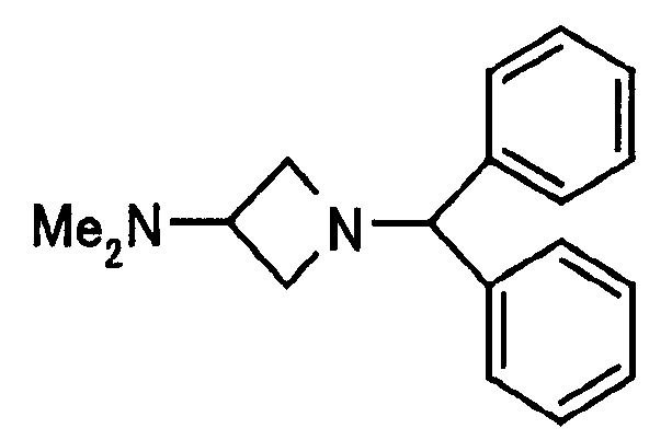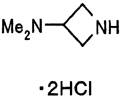 20% гидроксид палладия на угле (533 мг) добавляют к (1-бензгидрилазетидин-3-ил)диметиламину (533 мл), полученному в ссылочном примере 101, в этаноле (15 мл) и образовавшуюся смесь подвергают каталитическому восстановлению в атмосфере водорода в течение 18 часов. Катализатор отфильтровывают и затем к фильтрату добавляют смесь 1 н. HCl-этанол (4 мл). Растворитель выпаривают при пониженном давлении. К остатку добавляют эфир и осажденное твердое вещество выделяют фильтрованием, получая при этом указанное в заголовке соединение (300 мг, 87%). 1H-ЯМР (400 МГц, ДМСО-d6) LC-МС m/z: 101 (М+H)+. [Ссылочный пример 103] (1-Бензгидрилазетидин-3-ил)метансульфонат При охлаждении льдом метансульфонилхлорид (0,68 мл) добавляют по каплям к 1-бензгидрилазетидин-3-олу (1,50 г) в пиридине (12 мл) с последующим перемешиванием при комнатной температуре на протяжении ночи. К реакционной смеси добавляют смесь лед-вода и осажденный материал выделяют фильтрованием, получая при этом указанное в заголовке соединение (890 мг, 45%). ЖХ-МС m/z: 318 (М+Н)+. [Ссылочный пример 104] 3-Азидо-1-бензгидрилазетидин Метансульфонат (890 мг), полученный в ссылочном примере 103, растворяют в смеси N,N-диметилформамида (17,8 мл) и воды (1,8 мл). К образовавшемуся раствору добавляют азид натрия (237 мг) с последующим перемешиванием при 70°С в течение 3 часов. Реакционную смесь распределяют между водой и этилацетатом. Органический слой последовательно промывают водой и насыщенным раствором соли и затем сушат над безводным сульфатом магния с последующим фильтрованием. Растворитель выпаривают при пониженном давлении. Остаток очищают посредством колоночной хроматографии на силикагеле (гексан-этилацетат), получая при этом указанное в заголовке соединение в виде маслянистого продукта (635 мг, 86%). 1H-ЯМР (400 МГц, CDCl3) LC-МС m/z: 265 (М+H)+. [Ссылочный пример 105] 3-Амино-1-бензгидрилазетидин 5% палладий на угле (200 мг) добавляют к 3-азидо-1-бензгидрилазетидину (630 мг), полученному в ссылочном примере 104, в этилацетате (12 мл). Образовавшуюся смесь подвергают каталитическому восстановлению в атмосфере водорода в течение 15 часов. Катализатор отфильтровывают. Растворитель выпаривают при пониженном давлении. Остаток очищают посредством колоночной хроматографии на силикагеле (хлороформ-метанол), получая при этом указанное в заголовке соединение в виде твердого вещества (410 мг, 65%). 1H-ЯМР (400 МГц, CDCl3) LC-МС m/z: 239 (М+H)+. [Ссылочный пример 106] 1-Бензгидрил-3-метоксиазетидин При охлаждении льдом 1-бензгидрилазетидин-3-ол (718 мг) в тетрагидрофуране (8 мл) добавляют по каплям к суспензии 60% гидрида натрия (144 мг) в N,N-диметилформамиде (8 мл) и образовавшуюся смесь перемешивают в течение 20 минут. К реакционной смеси добавляют метилиодид (0,23 мл) с последующим перемешиванием ее при комнатной температуре на протяжении ночи. Реакционную смесь распределяют между холодным насыщенным водным хлоридом аммония и этилацетатом. Органический слой промывают насыщенным раствором соли и затем сушат над безводным сульфатом магния с последующим фильтрованием. Растворитель выпаривают при пониженном давлении. Остаток очищают посредством колоночной хроматографии на силикагеле (гексан-этилацетат), получая при этом указанное в заголовке соединение в виде маслянистого продукта (680 мг, 90%). 1H-ЯМР (400 МГц, CDCl3) LC-МС m/z: 254 (М+H)+. [Ссылочный пример 107] Гидрохлорид 3-метоксиазетидина Общую процедуру ссылочного пример