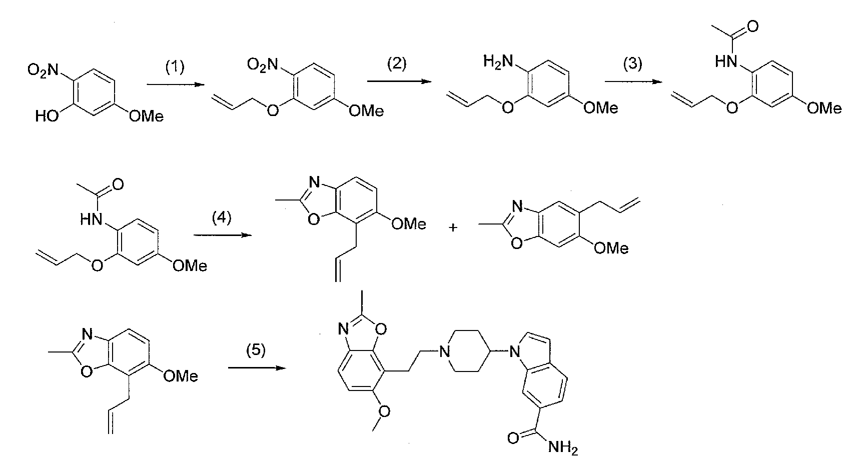 5) 1-{1-[2-(6-метокси-2-метилбензоксазол-5-ил)этил]пиперидин-4-ил}-1Н-индол-6-карбоксамид,