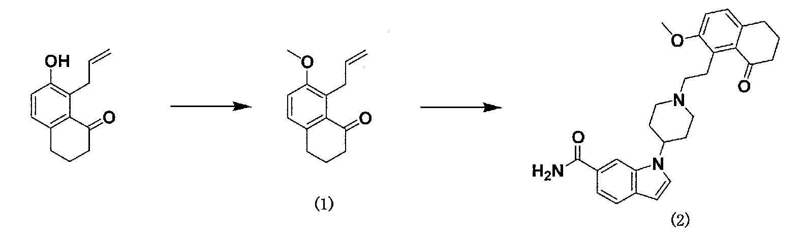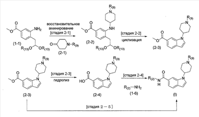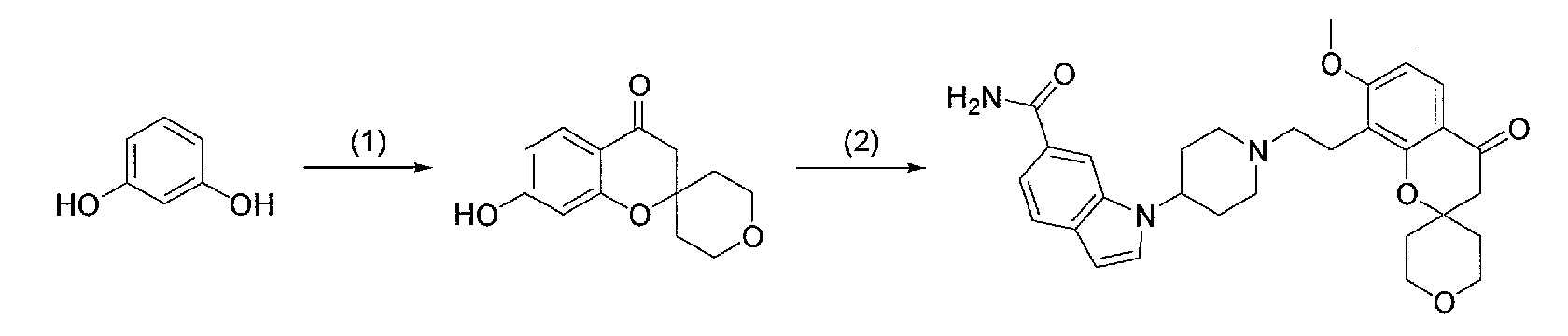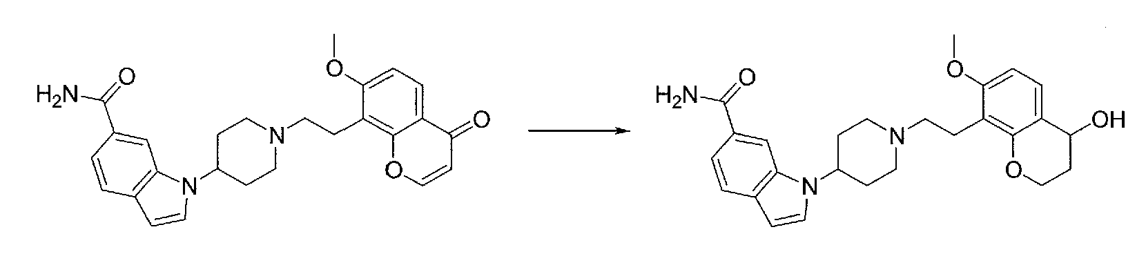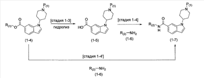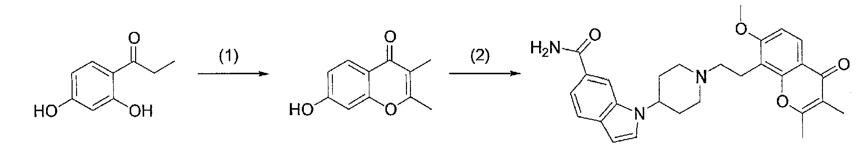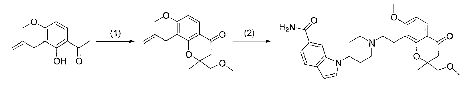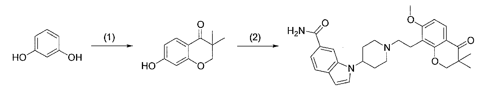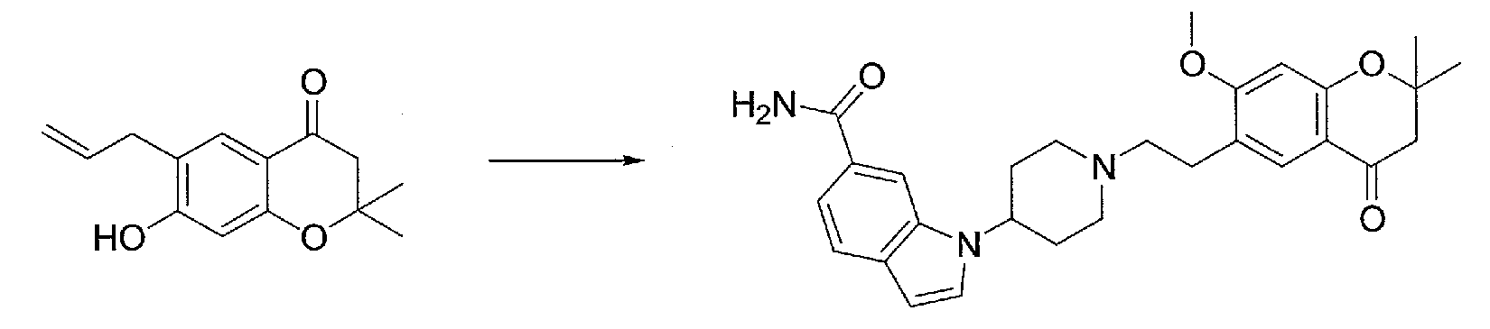 2) 1-{1-[2-(7-метокси-2,2-диметил-4-оксохроман-8-ил)этил]пиперидин-4-ил}-1Н-индол-6-карбоксамид,