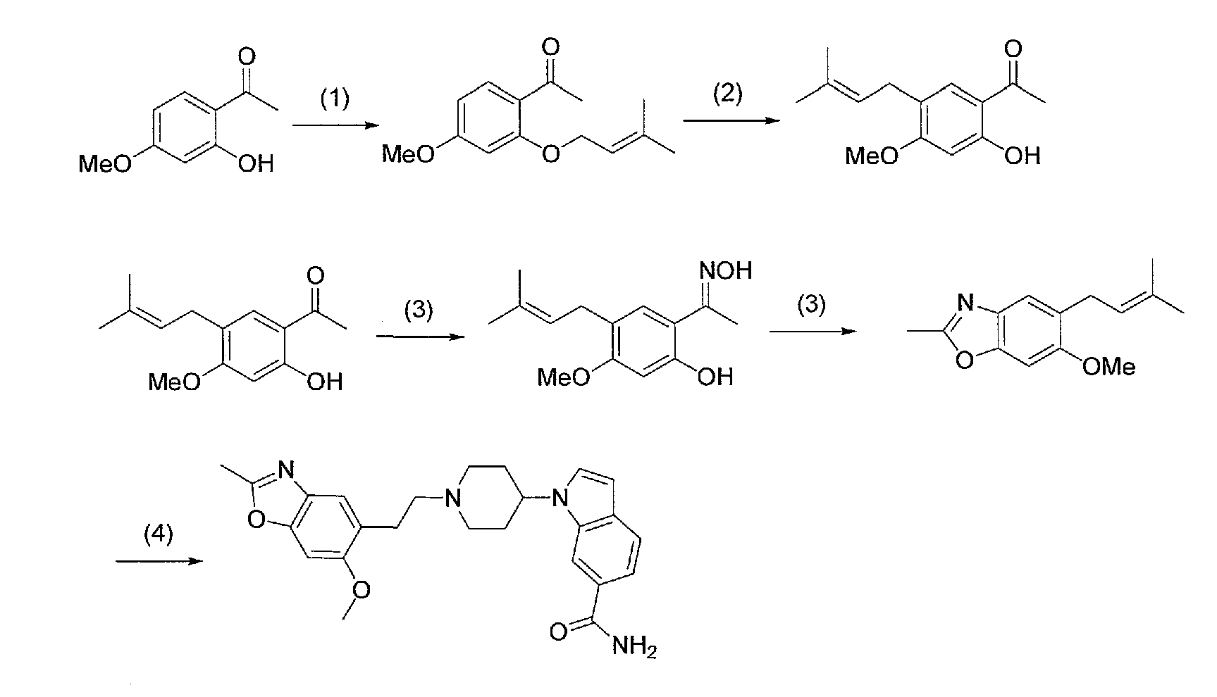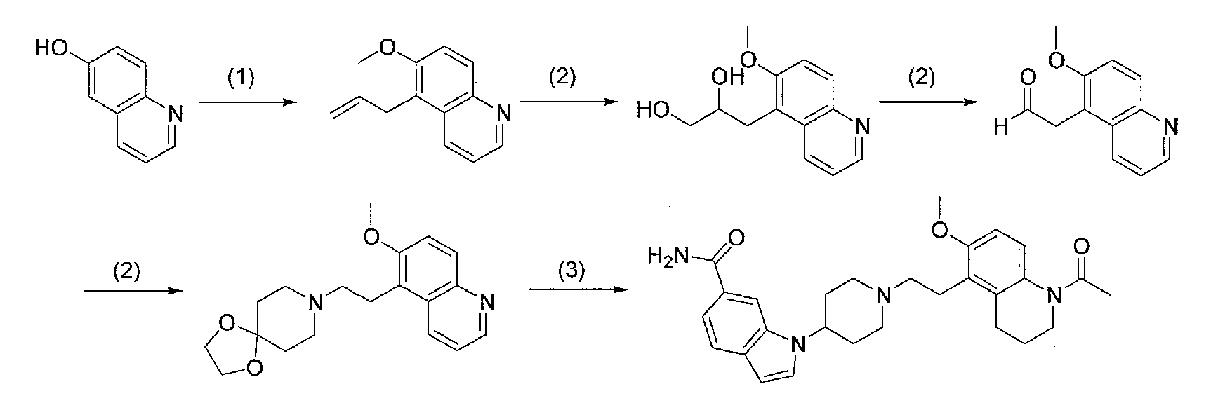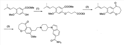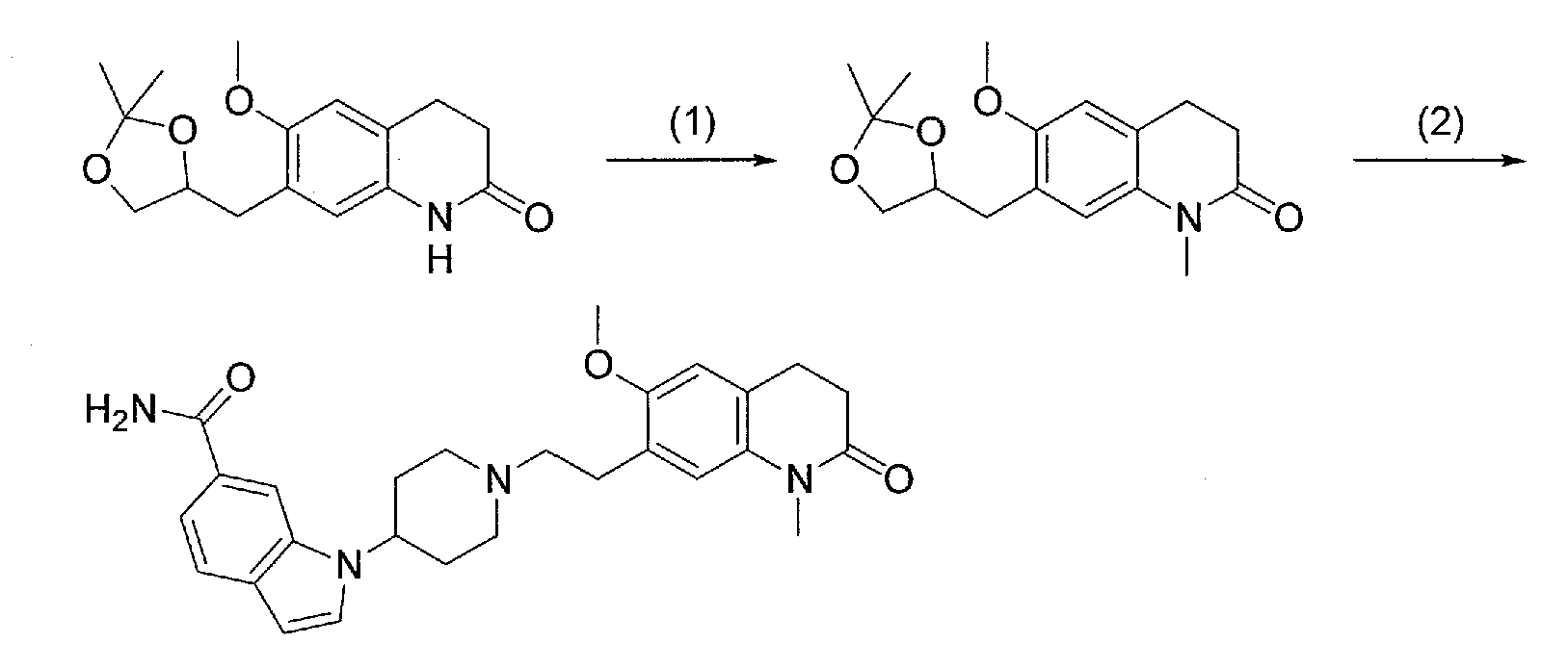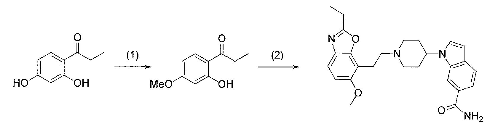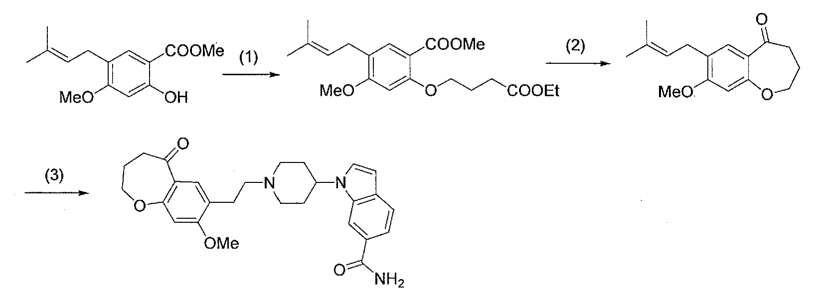 2) 1-{1-[2-(7-метокси-2,2-диметил-4-оксохроман-8-ил)этил]пиперидин-4-ил}-1Н-индол-6-карбоксамид,