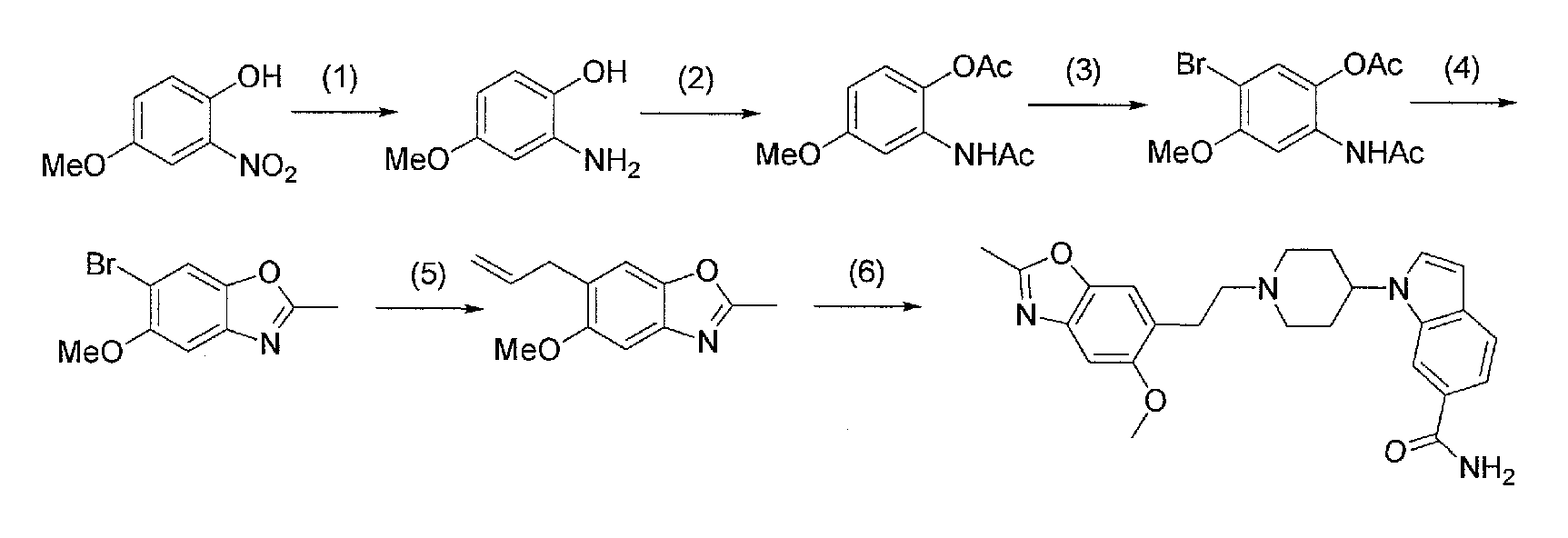 6) 1-{1-[2-(6-метокси-2-метилбензоксазол-7-ил)этил]пиперидин-4-ил}-1Н-индол-6-карбоксамид,