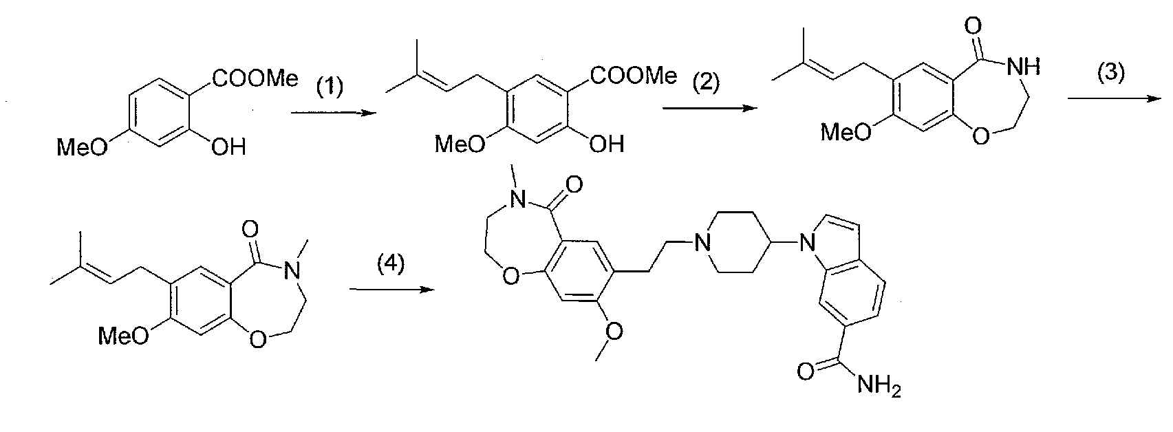 1) 1-{1-[2-(7-метокси-2,2-диметил-4-оксохроман-8-ил)этил]пиперидин-4-ил}-N-метил-1Н-индол-6-карбоксамид,