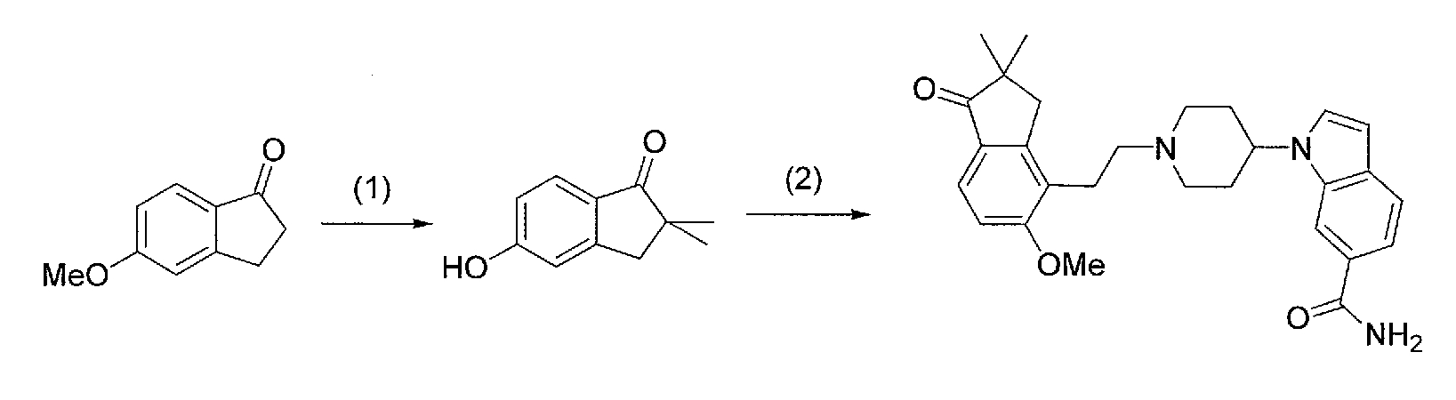 9) 1-{1-[2-(5-метокси-1-оксоиндан-4-ил)этил]пиперидин-4-ил}-1Н-индол-6-карбоксамид и
