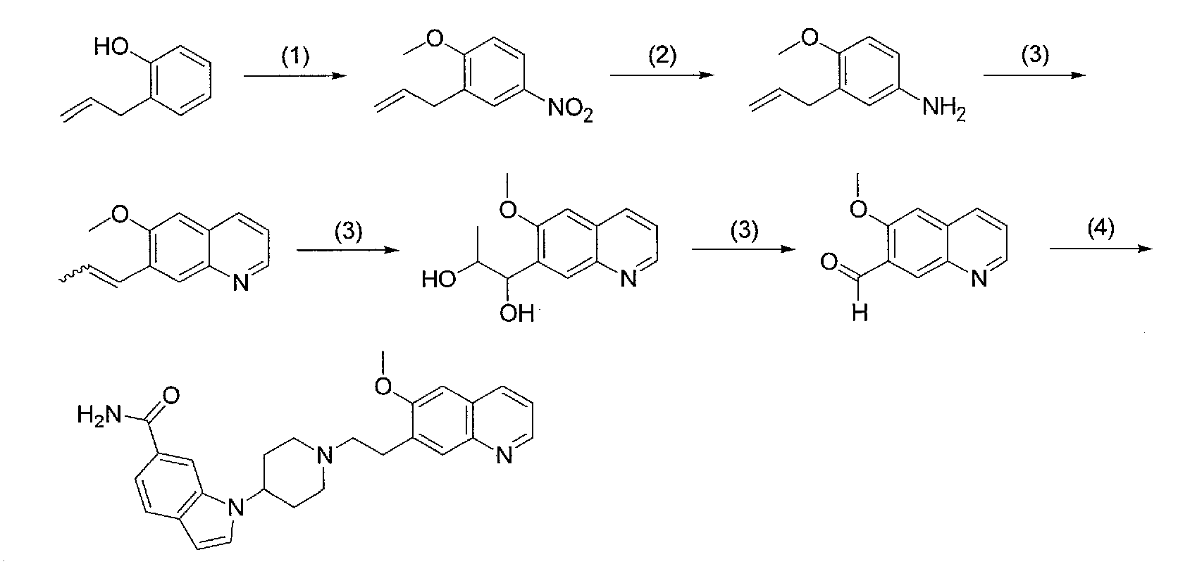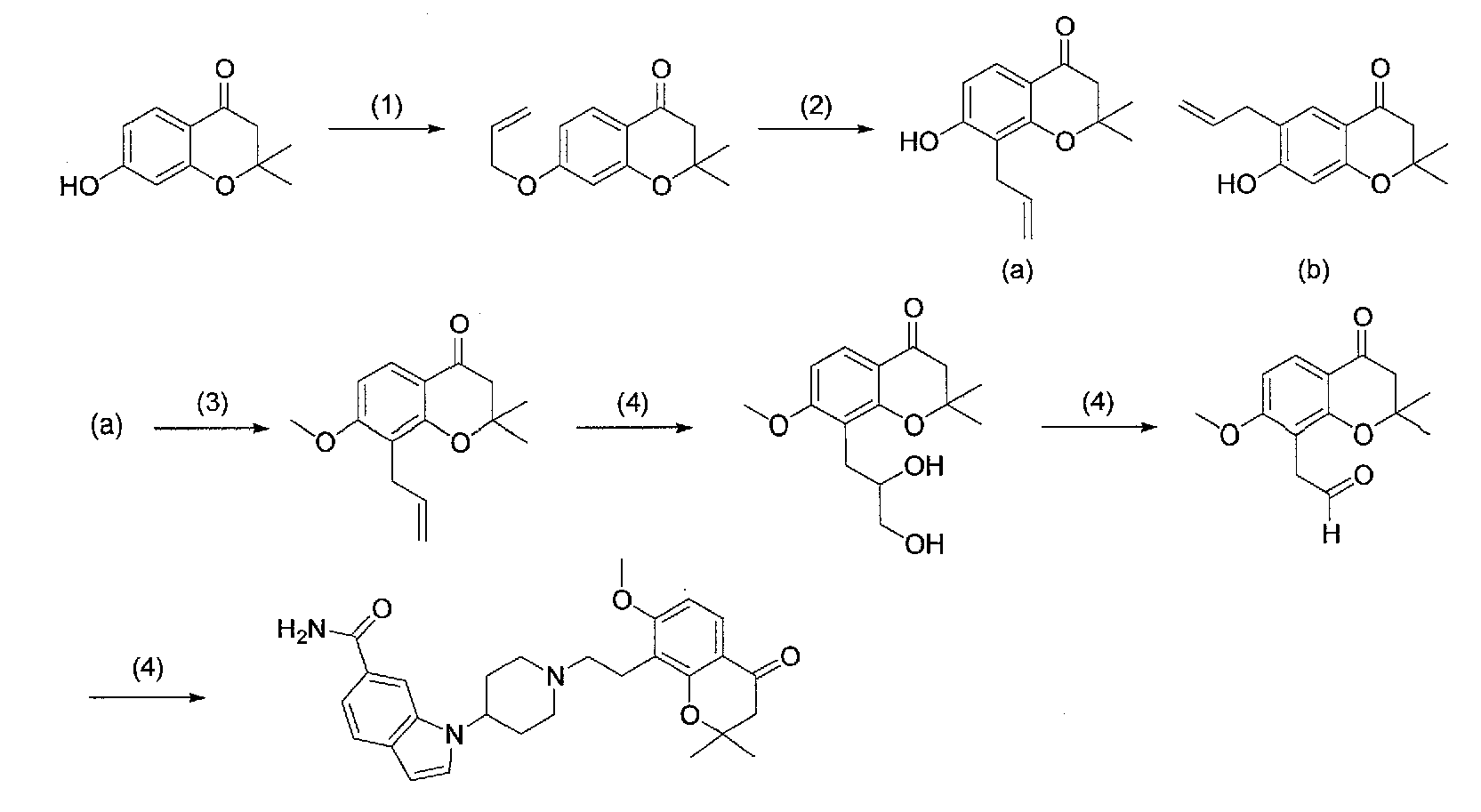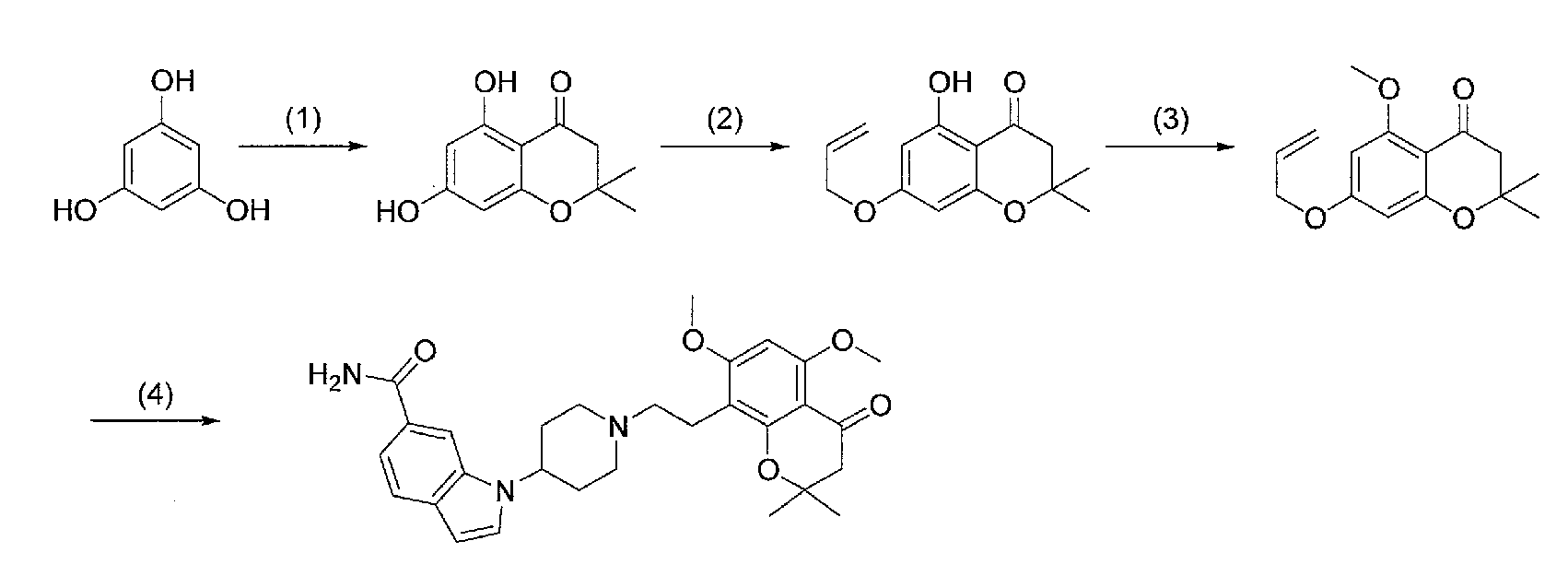 3) 1-{1-[2-(7-метокси-2,2-диметил-4-оксохроман-6-ил)этил]пиперидин-4-ил}-1Н-индол-6-карбоксамид,
