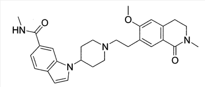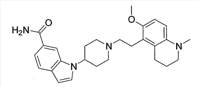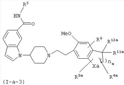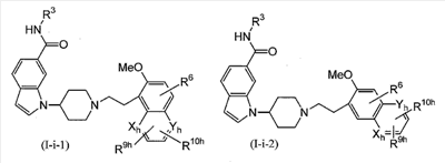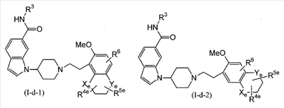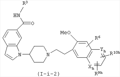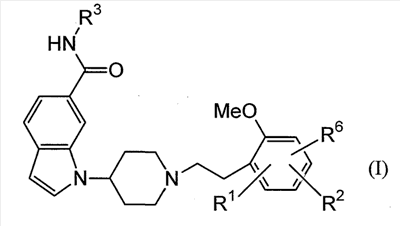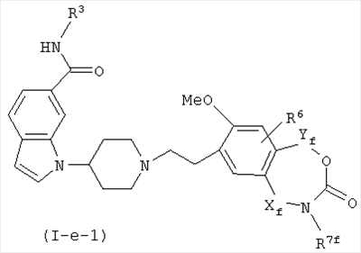Соединение, описанное в патентном документе 2, идентично описанному в патентном документе 3 соединению, представленному формулой (I), или соединению, описанному в примерах. Структурной особенностью данного соединения является то, что “оно имеет индольный или индолиновый скелет, содержащий циклический амин, который может быть замещенным арилалкильной группой или тому подобным в качестве боковой цепочечной структуры”.