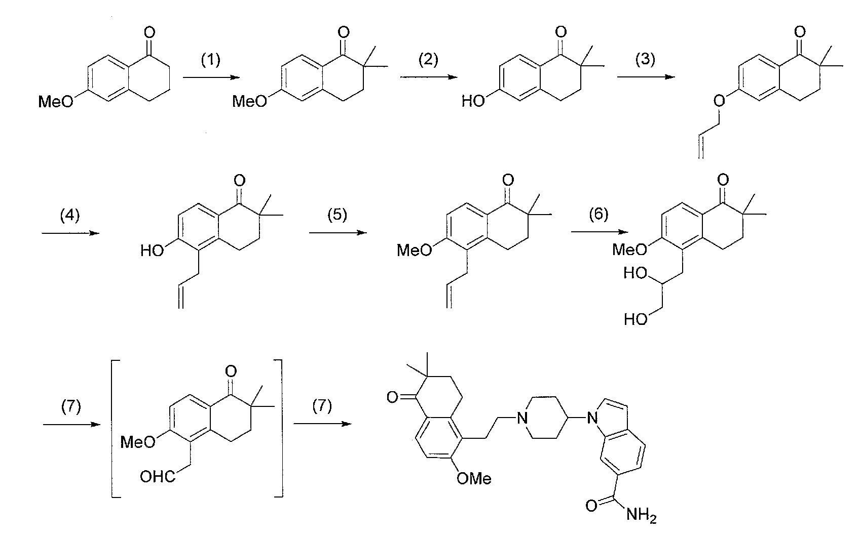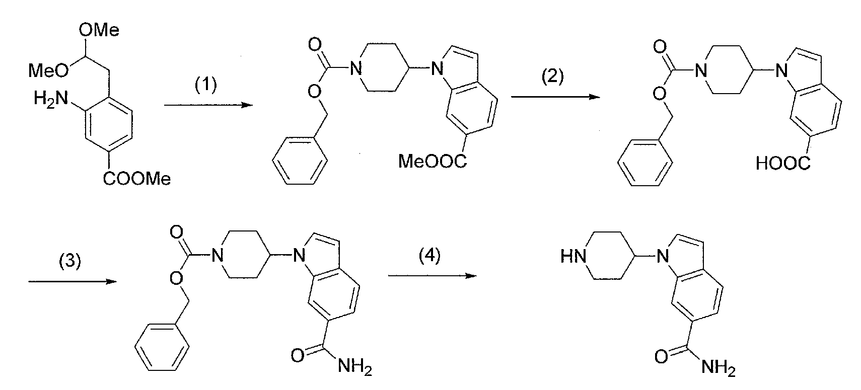 2) 1-{1-[2-(7-метокси-2,2-диметил-4-оксохроман-8-ил)этил]пиперидин-4-ил}-1Н-индол-6-карбоксамид и