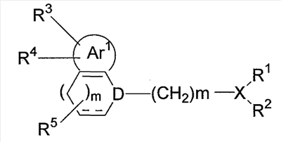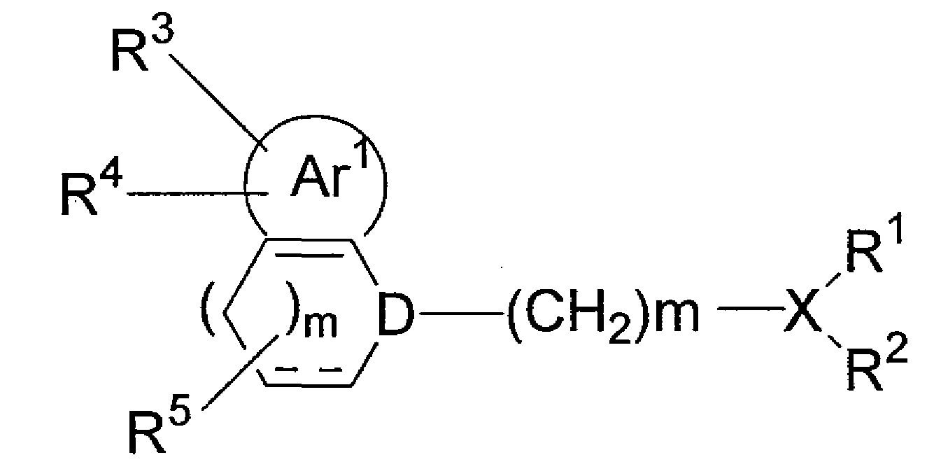 где цикл Ar1 представляет собой бензольный цикл или т.п.; D представляет собой атом азота или т.п.; R3 и R4 являются одинаковыми или различными и представляют собой атомы водорода или т.п.; R5 представляет собой атом водорода или т.п.; R1 и R2 представляют собой атомы водорода или т.п. или связаны друг с другом с образованием цикла, содержащего Х; и m представляет собой 0 или целое число от 1 до 6.