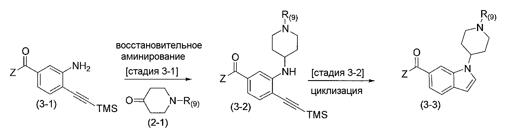 где каждый из R1 и R3 представляет собой атом водорода; R2 представляет собой карбамоильную группу; R5 представляет собой арилалкильную группу, которая может быть замещенной; n и m представляют собой 0; p представляет собой 2; каждый из T и Z представляет собой атом азота и Y представляет собой метиновую группу. Ближайшим соединением является соединение, описанное в примере 337. Однако указанные раскрытые соединения ограничены соединениями, “которые имеют индольный или индолиновый скелет, содержащий циклический амин, который может быть замещенным арилалкильной группой или тому подобным в качестве боковой цепи”. Нет описаний с предложением соединения по настоящему изобретению, представленного формулой (I), “которое содержит незамещенную или монозамещенную карбамоильную группу в положении 6 на индольном скелете и содержит метоксигруппу в арильной группе арилалкильной боковой цепи, отходящей от атома азота в пиперидиновом цикле, в ортоположении относительно алкильной боковой цепи”.