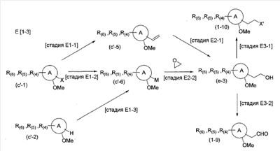 где R3 представляет собой атом водорода или метильную группу; R4e и R5e представляют собой заместители, выбранные из следующей группы А1 заместителей; R6 представляет собой заместитель, выбранный из следующей группы А1 заместителей; и каждый из Хе и Ye представляет собой (1) атом кислорода, (2) метиленовую группу, (3) -CONR7e– (где R7e представляет собой (1) атом водорода или (2) С1-С6 алкильную группу), (4) -NR7eCO- (где R7e имеет определенное выше значение), (5) -NR8e– (где R8e представляет собой (1) С1-С6 алкильную группу или (2) С1-С6 ацильную группу) или (6) одинарная связь, группа А1 заместителей: (1) атом водорода, (2) С1-С6 алкоксигруппа.