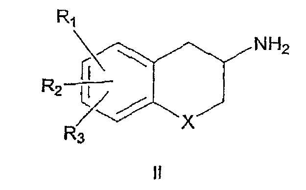 Соединения формулы I получены взаимодействием соединения формулы II, в которой Х представляет собой СН2, кислород или серу; R1, R2 и R3 одинаковы или различны и представляют собой водород, галоген, алкил, алкиларил, алкилокси, гидрокси, нитро, алкилкарбониламино, алкиламино или диалкиламиногруппу,