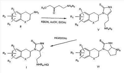 или (R)-1-хроман-3-ил-5-(2-метиламиноэтил)-1,3-дигидроимидазол-2-тион гидрохлорид.
