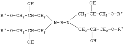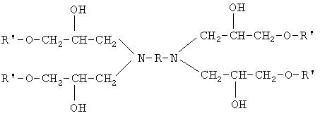 В известной композиции азотсодержащий катализатор и кремнийорганический пеностабилизатор – два продукта, имеющие разные химические формулы, свойства и назначение. Известна композиция для получения жесткого пенополуретана (авт.св. №1654316, кл. С08L 75/08, 1991, Бюл. №21), в которой смесь простых полиэфиров смешивают с глицерином, кремнийорганическим пенорегулятором, водой, трихлорфторметаном, трис-(2-хлорэтил)-фосфатом и диметилэтаноламином. Затем гидроксилсодержащий компонент с полиизоцианатом интенсивно смешивают. В композиции азотсодержащий катализатор, кремнийорганический пеностабилизатор и сшивающий агент являются разными продуктами. В качестве продукта, выполняющего как минимум две функции азотсодержащего катализатора и кремнийорганического пеностабилизатора, в пенополиуретановых композициях может быть использован кремнийорганический амин где R и R’ – радикалы. Кроме того, кремнийорганический амин может быть использован вместо сшивающего агента – глицерина, однако полностью заменить глицерин не может. Кремнийорганический амин получают следующим образом: 1 моль кремнийорганического амина АСОТ-2 (ТУ 6-02-1250-83), КрООТ-1 (пат. RU №223006, кл. С07F 7/10, 2004, Бюл. №16) перемешивают с 4 молями моноглицидилового эфира (бутилглицидилового (БГЭ) или 2 этилгексилглицидилового (Лапроксид 301Г) или другого эфира). Реакцию ведут при перемешивании в течение 10-14 часов. Полученные вещества имеют следующие свойства (таблица 1). Характеристики кремнийорганических аминов.
