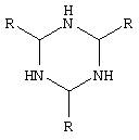 где Y – связующая группа согласно приведенному выше описанию, например, СХ2ОСХ2, (СХ2ОСХ2)p или (CX2CX2)p, где р – целое число от 1 до 5, каждая из групп X, независимо друг от друга, – Н, F или Cl, каждый из R независимо выбирается из группы Н, С1-С8 алкил, алкенил, С6-С15 арил, алкарил или алкенарил, и где R является факультативно замещенным радикалом. В некоторых случаях каждый из остатков R, используемых в рамках настоящего изобретения, – Н, С1-С6 алкил или алкенил, а R факультативно является замещенным, в отдельных случаях, каждый из остатков R – Н. В одном из вариантов в веществе, соответствующем общей формуле XYZn, n=1, a Z – это Х. В число других примеров амидинсодержащих вулканизующих веществ входят соединения, соответствующие формуле: