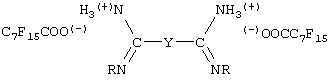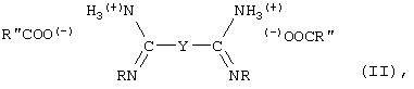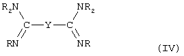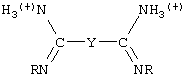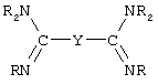 где Y – это связующая группа согласно приведенному выше описанию, и эти вещества используются в комбинации с анионом, например, таким как описано ниже и в том числе Cl–, Br–, I–, RCOO– и т.п. В качестве еще одной группы амидинсодержащих вулканизующих веществ можно назвать соединения, соответствующие формуле:
