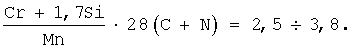 при этом суммарное содержание бора и магния составляет 0,012-0,051, а содержание хрома, кремния, марганца, углерода и азота связано зависимостью: