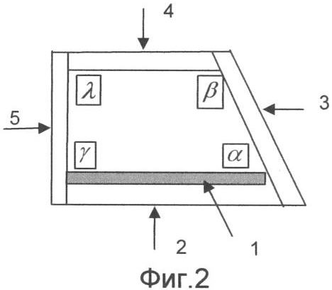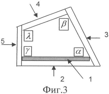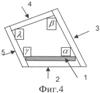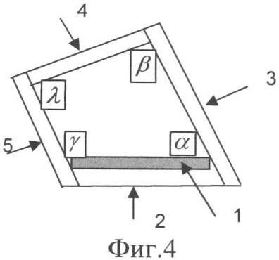 – плоская профилированная затравка Z-среза монокристалла 1 размещается на планке основания 2 собираемого формообразователя. Планка 3 устанавливается относительно планки 2 под углом синхронизма – первый внутренний угол формообразователя. Следующие две планки – 4 и 5 устанавливаются под углами = =90° относительно каждой из предыдущих планок это второй и третий внутренние углы формообразователя. В результате образуется замкнутая рамка формообразователя с внутренними углами: – угол синхронизма, = =90° и =180°- , который образовался автоматически. Формообразователь позволяет получить заготовку нелинейного оптического элемента уже с тремя ориентированными плоскостями.