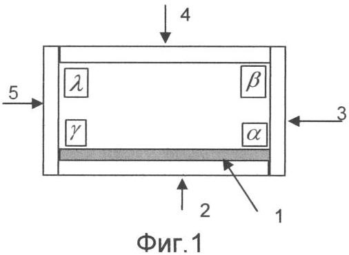 – плоская профилированная затравка Z-среза монокристалла 1 размещается на планке основания 2 собираемого формообразователя. Планка 3 устанавливается относительно планки 2 под углом синхронизма – первый внутренний угол формообразователя. Планка 4 устанавливаются под углом =90° относительно предыдущей планки 3, образуя второй внутренний угол формообразователя. Планка 5, замыкающая рамку формообразователя, устанавливается под углом =180°- – это третий внутренний угол формообразователя. Четвертый внутренний угол =90° образуется автоматически. Формообразователь позволяет получить заготовку нелинейного оптического элемента с двумя ориентированными плоскостями.