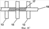 фиг.4А-С – вид сбоку и характерные виды сверху в процессе нанесения смолы между нитями.