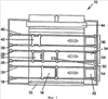 Переходя теперь к более конкретному рассмотрению фиг.1, где основа-подложка 12 показана движущейся в направлении вверх через установку 10 при осуществлении способа согласно настоящему изобретению, отмечаем, что установка 10 содержит цепочку из нескольких станций, через которые в процессе шагового перемещения может проходить основа-подложка 12 по мере выхода из них изготавливаемой ленты.