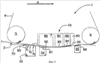 Фиг.4 также аналогична фиг.2 с тем исключением, что отдельные опорные элементы 70 сеток входного ящика 53 заменены непрерывной изогнутой поверхностью 100, расположенной на поддерживающей поверхности 90, как описано Бучананом (Buchanan) и другими в документе US 2003/017438. Кроме того, переходной ящик 55 разделен внутри на две отдельные вакуумные зоны 101 и 102, каждая из которых снабжена своим собственным источником (не показаны) управляемого разрежения.
