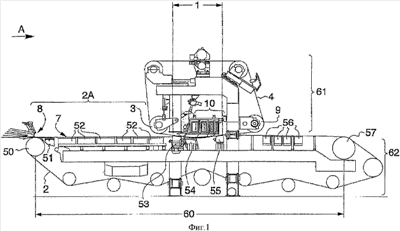 На фиг.1 показана двухсеточная формующая часть 1 гибридного типа. Формующая часть 1 расположена, по существу, горизонтально; стрелка А показывает горизонтальное направление.