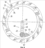 На фиг.1 представлен вращающийся корпус дорожной фрезерной машины, а именно фрезерный барабан 10. На поверхности 11 фрезерного барабана 10 расположены на расстоянии друг от друга при систематическом распределении базовые части 20. Базовые части 20 связаны с поверхностью 11 барабана, предпочтительно с помощью сварки. Базовые части 20 имеют приемное гнездо 21 для вставки. В приемное гнездо 21 для вставки можно вставить вставной насадок резцедержателя 23. Крепление резцедержателя 23 на базовой части 20 осуществляется с помощью нажимного винта 22. Резцедержатель 23 имеет гнездо 24 для приема резца, которое в данном случае выполнено в виде отверстия. В отверстие можно вставить резец 30, в данном случае резец с круглым хвостовиком. Резец 30 имеет головку 31 резца, на которой с передней стороны закреплена вершина 32 резца, состоящая из твердого сплава или керамического материала. К головке 31 резца примыкает хвостовик 33, на который надета зажимная втулка 34. Зажимная втулка 34 не может перемещаться в осевом направлении, однако связана с хвостовиком 33 с возможностью вращения в окружном направлении.
