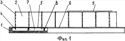 Разъемная форма содержит поддон 1, стенки 2 с петлями 3, элементы крепления 4, перфорированную круглыми или квадратными отверстиями 5 пластину 6. Пластина расположена на поддоне и выполнена съемной. Поддон имеет выемку 7 с размещенной в ней опорной решеткой 8. Стенки (короткие, длинные, изогнутые) установлены на пластине с возможностью переустановки. Элемент крепления выполнен в виде пропущенного в петли металлического стержня, нижняя часть которого может быть установлена в любое из отверстий перфорированной пластины. Для придания жесткости двум и более стенкам, установленным по прямой линии, верхняя часть стержней может быть помещена в направитель 9, изготовленный, например, из стальной полосы с отверстиями, стального отрезка П-образного профиля. Форма может иметь любую, в том числе геометрически сложную, конфигурацию.