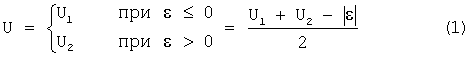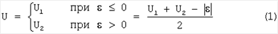 Как известно, наличие селектора минимума в системе автоматического регулирования позволяет исключить зону совместной работы каналов и обеспечивает воздействие на регулирующий фактор только одного регулятора. Это можно пояснить выражением, описывающим работу селектора минимума, которое относительно разности входных сигналов =U1-U2 имеет вид: