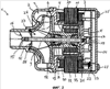 Во втором конструктивном варианте исполнения по фиг.2 радиальные подшипники 7, 8 скольжения в роторе 5 удерживаются упругими кольцами 30, 31 круглого сечения. Эти кольца 30, 31 предназначены, с одной стороны, для компенсации допусков в гнездах подшипников скольжения ротора 5, чтобы подшипники 7, 8 скольжения располагались на оси 9 концентрично. С другой стороны, упругие кольца 30, 31 гасят вибрации ротора 5. Поэтому можно отказаться от кольца 19 в гнезде 17 щита 3 и от резинового амортизатора 14 для гашения вибрации оси 9, которые предусмотрены в первом конструктивном варианте согласно фиг.1. Далее во втором конструктивном варианте обтекатель 26 по фиг.1 выполняет одновременно функцию стяжного кольца 11, что позволяет отказаться и от этой детали.