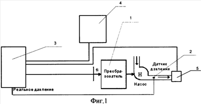 Рассмотрим изобретение, представленное на фиг.1. Оно состоит из частотного преобразователя 1, установленного в цепь управления электродвигателя насоса; датчиков 2, сигналы которых идут на контроллер; цифроаналогового контроллера 3, на который поступает информация о состоянии системы, выдающего управляющие воздействия на исполнительные механизмы; системы управления 4 пуском и остановом насосных агрегатов; запорной арматуры 5.