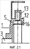 На фиг.2.1 рабочее колесо 1 изображено без консолей 11 и лопатки 2. Исходя из этого сначала на консоль 11 надевают подшипник 14 качения, а затем в надставку 13 несущего кольца 5 вклеивают втулку 15.