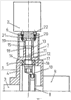 Внешний конец консоли 11 выступает из надставки 13 несущего кольца 5 и снабжен на этой части резьбой. На резьбу консоли 11 накручена гайка 19 консоли. Гайка 19 снабжена фланцем 20 с внутренним и внешним краями. В ввинченном состоянии гайка 19 опирается торцевой поверхностью на надставку 13 несущего кольца 5. Гайка 19 фиксирует тем самым опору консоли 11 в несущем кольце 5.
