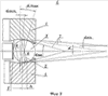 На фиг.4 показан разрез В-В на фиг.2. На чертеже изображено взаимное расположение деталей упорного подшипника при передаче максимального осевого усилия. Увеличено. Повернуто на 30°.