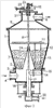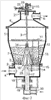 Камера 1 заполняется инертными телами. Через патрубок 4 в газоподводящий короб 3 подают основную часть свежего теплоносителя, откуда последний через газораспределительную решетку 2, выполненную в виде перфорированной шайбы, соединенной с перфорированным вытеснительным конусом 7, попадает в камеру 1 и создает кольцевой кипящий слой инертных тел. Исходный материал из камеры 10 через полый вал 8 подают к форсункам 13 для распыления в слой инертных тел или, при необходимости, на зеркало кипящего слоя. Благодаря вращению траверсы 11 происходит равномерное орошение всего слоя. Синхронно с форсунками 13 вращаются и патрубки 14 и 16, в которые через трубопровод 20 и стакан 17 подводят вторичный теплоноситель с температурой более высокой, чем у основной части свежего теплоносителя. Проходя через сопла 15 и 25 и отверстия газораспределительной решетки 2, поток вторичного теплоносителя создает в слое инертных тел зону локального фонтанирования. Благодаря высокой температуре и большой относительной скорости теплоносителя и инертных тел процесс тепло- и массообмена в этой зоне идет весьма интенсивно, что приводит к почти мгновенной сушке пленки исходного материала на поверхности инертных тел. В остальной массе слоя в это время происходит досушка материала и отделение высушенного материала от инертных тел вследствие их соударений.