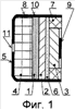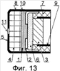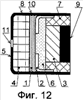 фиг.12 – пирогенератор, двенадцатый пример исполнения (один из контактов пирогенератора выполнен в виде запрессованного в изолирующую вставку металлического порошка, в качестве другого контакта используется металлический корпус пирогенератора);