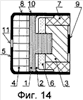 фиг.14 – пирогенератор, четырнадцатый пример исполнения (в аноде и сепараторе есть по крайней мере одно отверстие, заполненное электролитным материалом, а в катоде есть углубление, заполненное электролитным материалом);